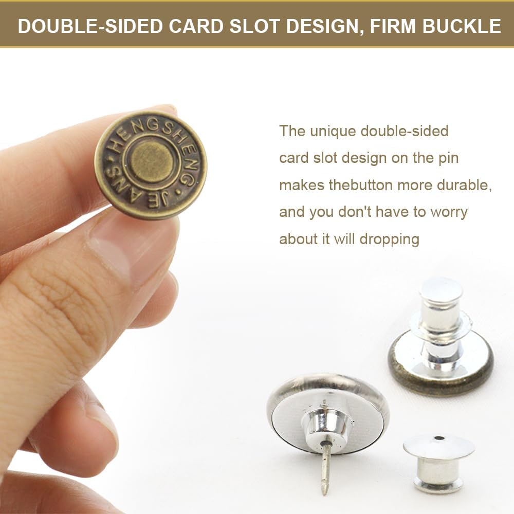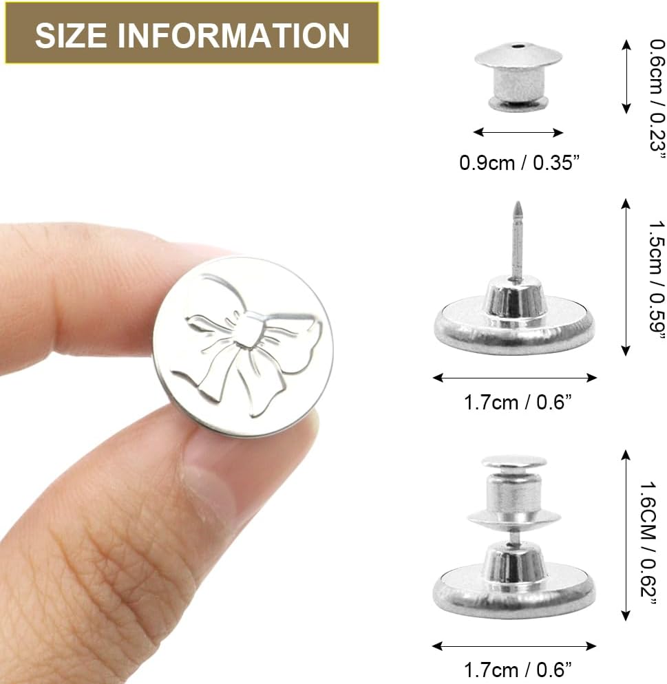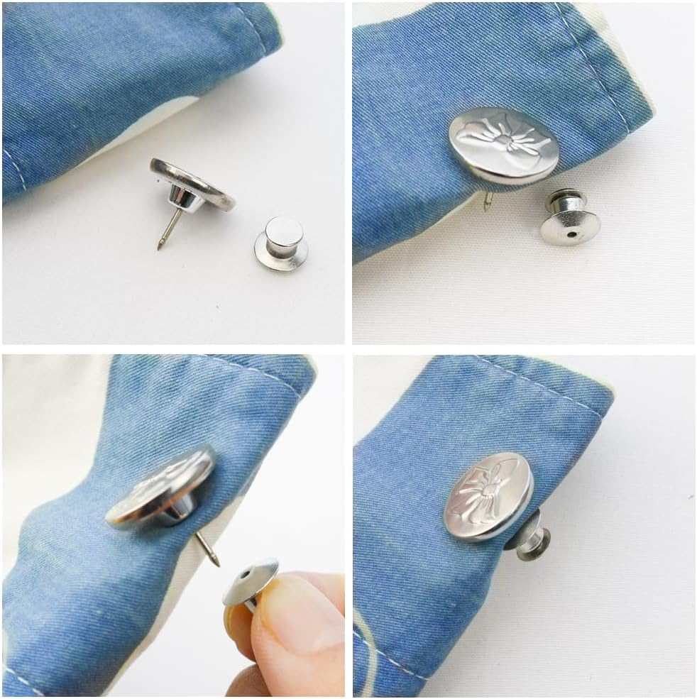 Easy to use: No sewing required, easy to install and remove in just a few seconds, first pull the smallest round piece below loose, then continue to pull the smallest round piece, separate the pin from the base, then push the button needle through the fabric, Install the base, and once you're done, you can change the buttons of any garment on a daily basis.