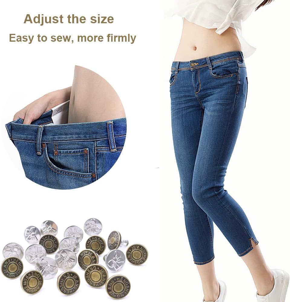 TCOTBE 20 قطعة من دبابيس أزرار الجينز للجينز، زر جينز خالٍ من الأظافر، زر معدني خالٍ من الدرزات وتعديل قابل للفصل، لا توجد أزرار جينز مخيطة لتضييق أزرار الجينز الفضفاضة