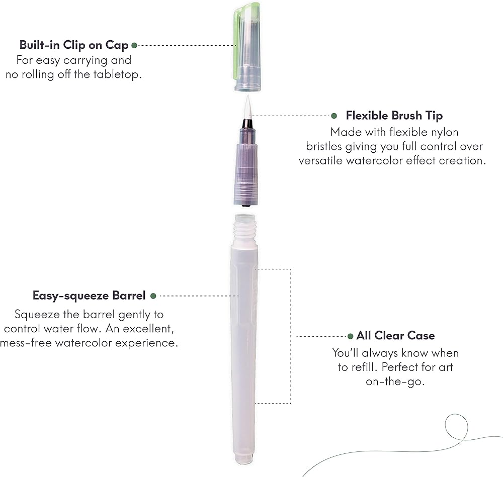 أقلام فرشاة مائية من MozArt Supplies - مجموعة مكونة من 6 رؤوس للفرشاة، أقلام مائية - رائعة للدهانات المائية، وأقلام الرصاص القابلة للذوبان في الماء، وقلم الفرشاة، وأقلام التحديد - أقلام فرشاة قابلة لإعادة الملء - قلم مائي، وفرش فنية