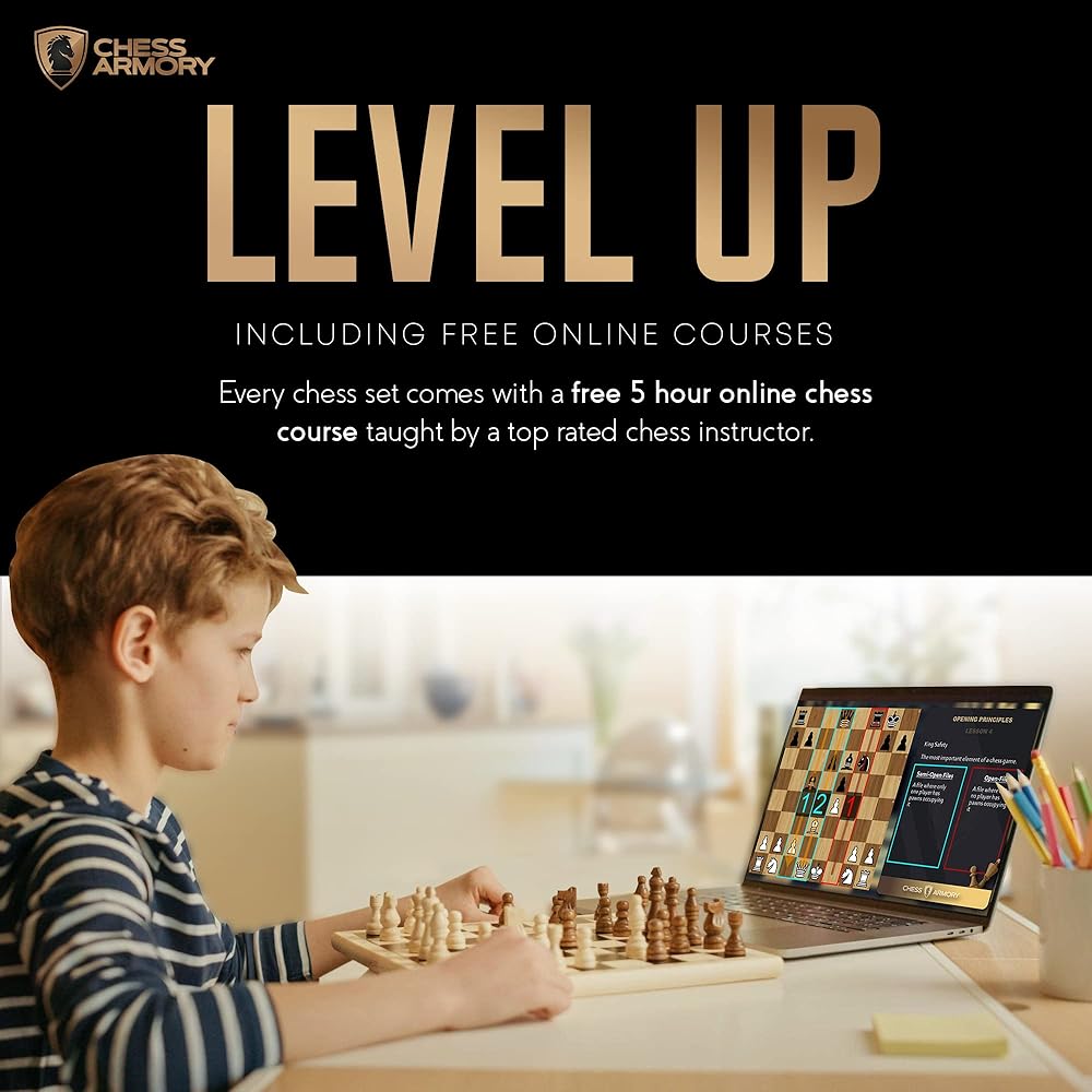 • دورة تدريبية عبر الإنترنت - لمساعدتك على الانطلاق، تأتي كل مجموعة شطرنج تشيس ارموري مع دورة مجانية عبر الإنترنت مدتها 5 ساعات يدرسها خبير الشطرنج الداخلي لدينا. تعلم التكتيكات والاستراتيجيات والفتحات فورًا.