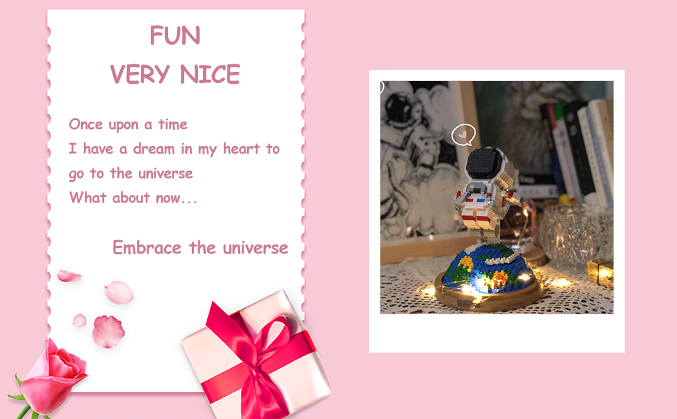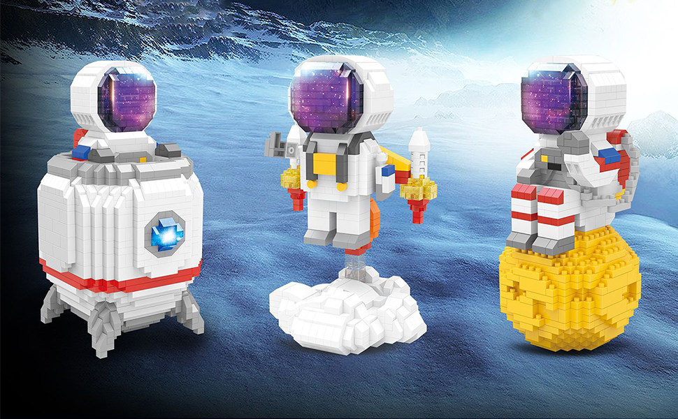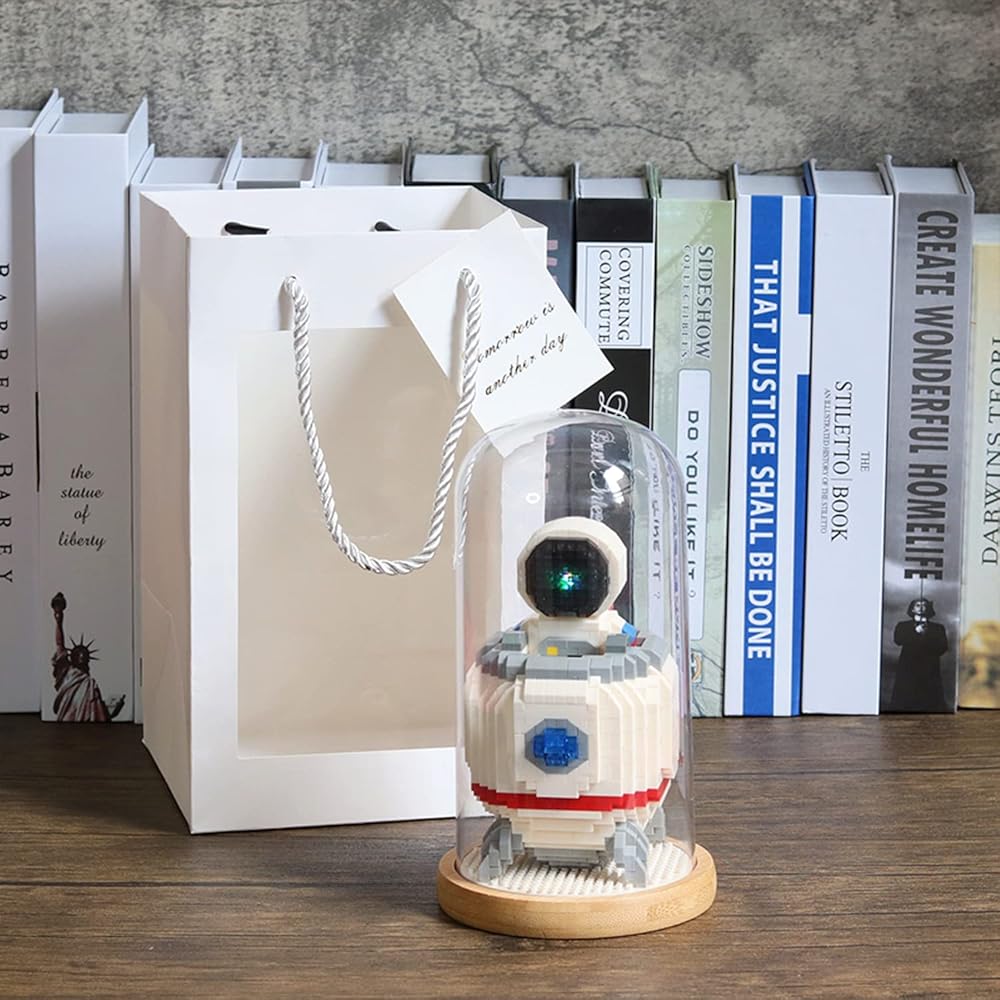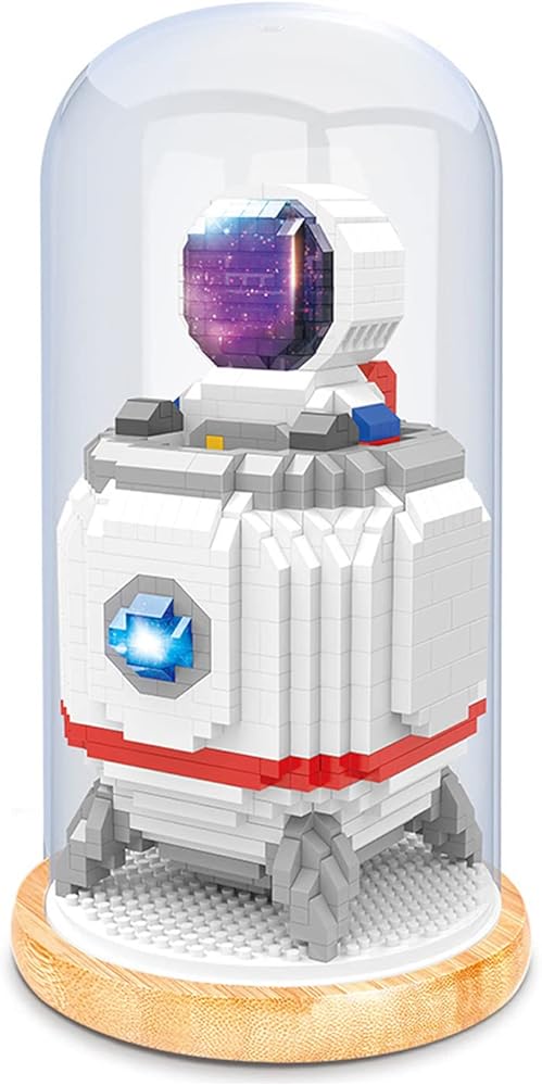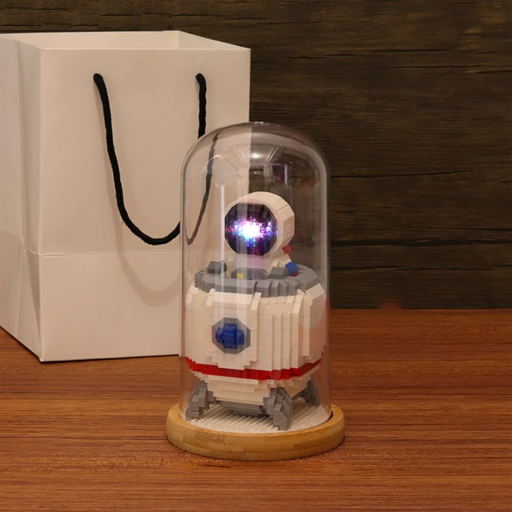 مكعبات بناء صغيرة نموذج رائد فضاء مع ألعاب بناء مكعبات صغيرة تصنعها بنفسك مجموعات بناء ألعاب الطوب للبالغين أو المراهقين، تتضمن قبة مقاومة للغبار (مع أضواء + رفع رقم 1)
