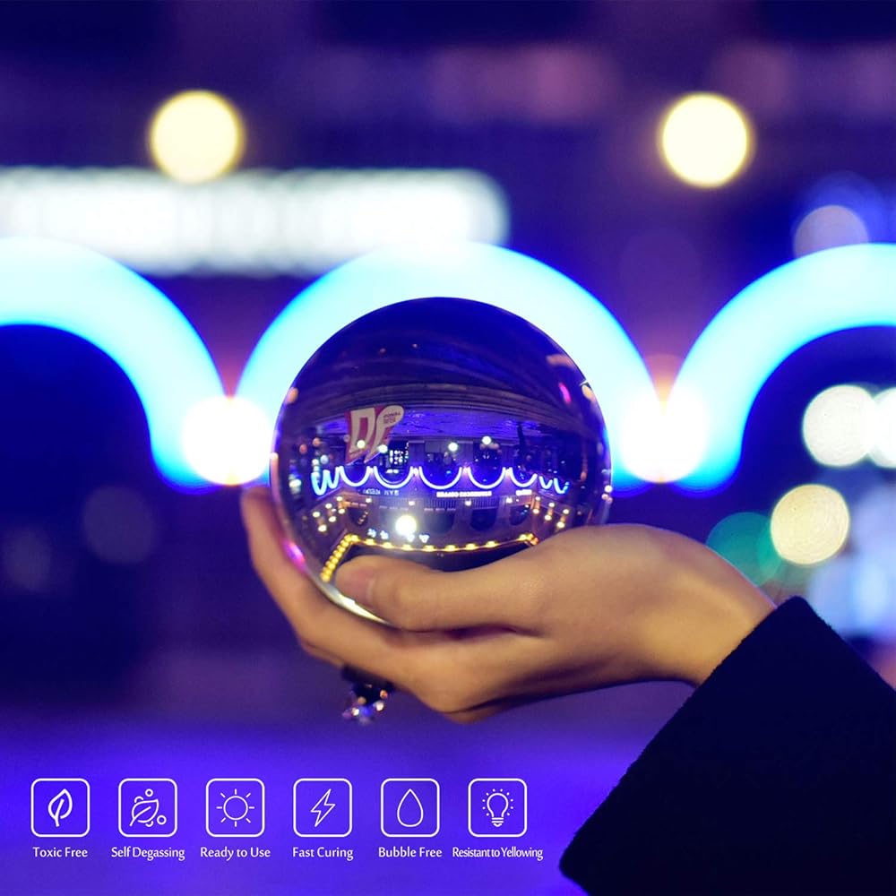 • PREMIUM - Ultraviolet resin cures crystal clear, glassy finish that provides excellent scratch resistant, stain resistance and yellowing resistance. And its self leveling and self degassing characteristics make it easier for your crafting!