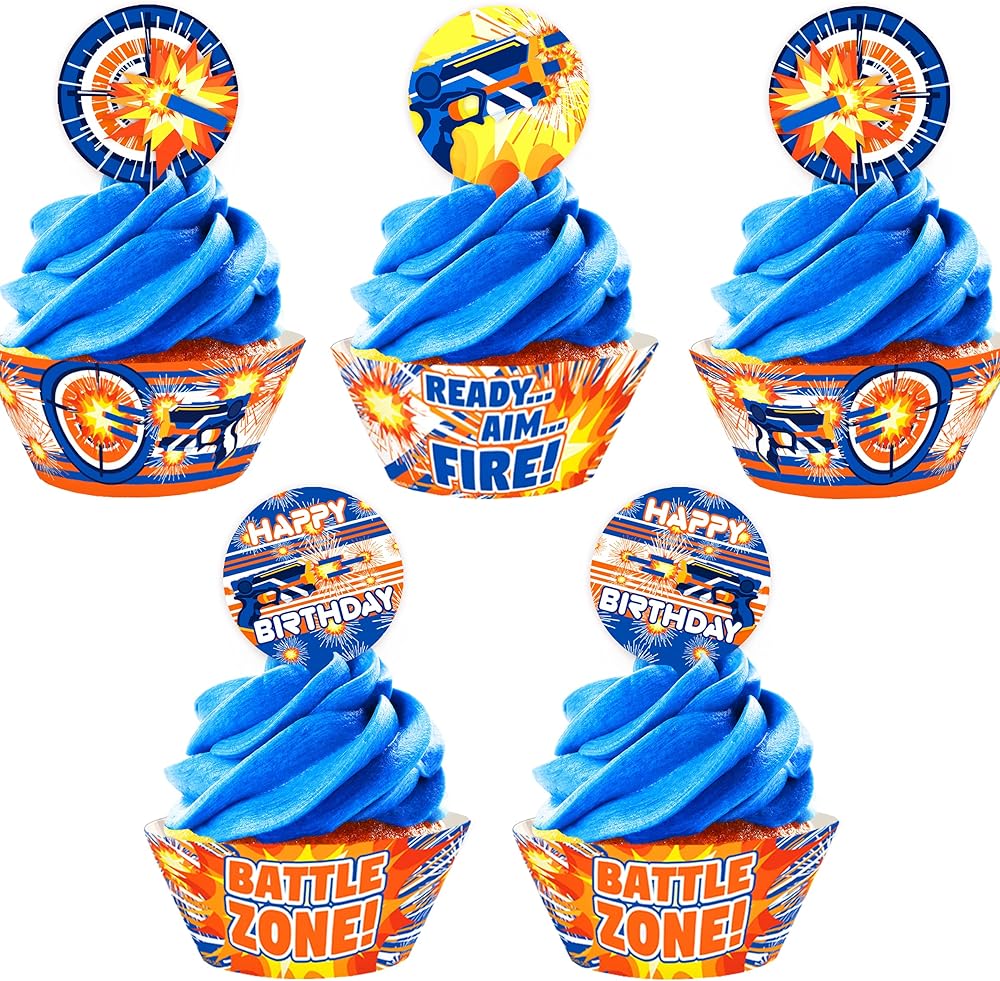 Dart War Cupcake Kit - 24 Dart War Cupcake Toppers and 24 Cupcake Wrappers - Dart War Party Supplies - Dart War Party Decorations - Dart Party - Cupcake 2