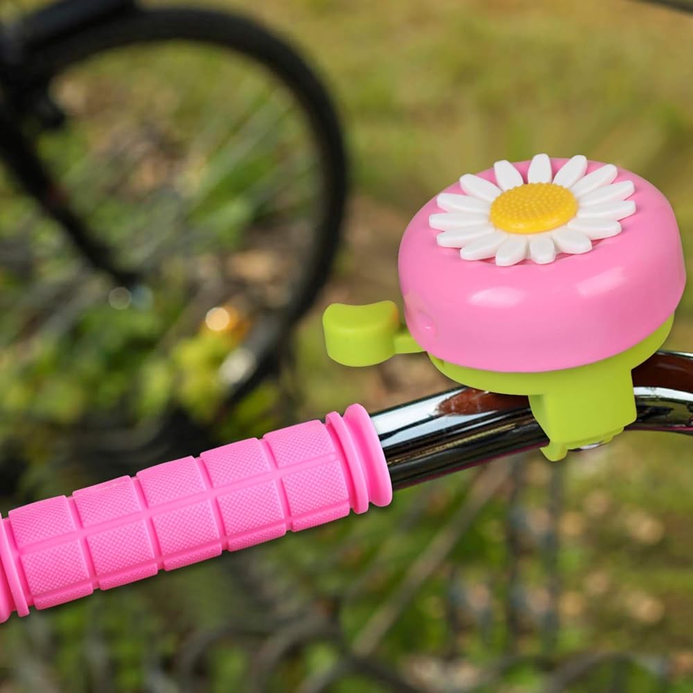 مقابض مقود الدراجة باللون الزهري، شرائط دراجة، قضبان عجلة الدراجة على شكل فراشة، جرس زهور لملحقات دراجة الأطفال