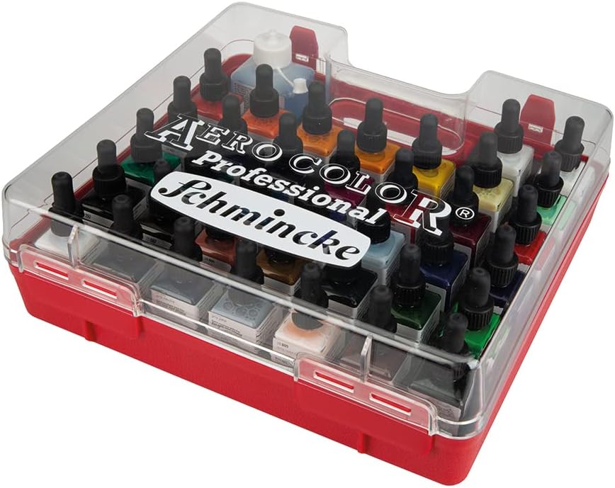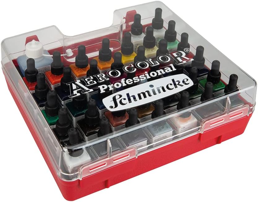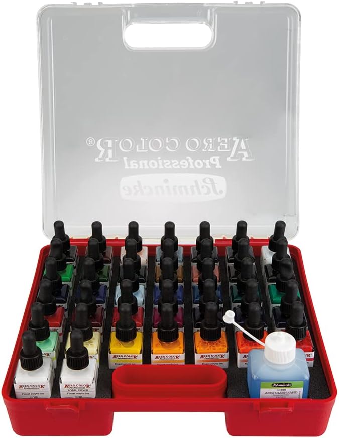 🎨 الجودة: تحتوي المجموعة القياسية AERO COLOR Professional على 36 لونًا أكريليكًا فائقًا ورائعًا وفائق السيولة. الألوان خفيفة للغاية ومصطبغة بدرجة عالية لمتانة خاصة ونتائج مزج رائعة غير محدودة. ألوان AERO COLOR مثالية للاستخدام مع الفرش وبنادق الرش وأقلام الحبر وأقلام الرسم للرسم وفرشاة الهواء والتقنيات المختلطة، مثل الألوان المائية والوسائط المختلطة مع ألوان أكريليك Schmincke الأخرى وبطانات Schmincke.