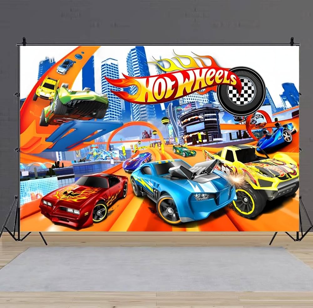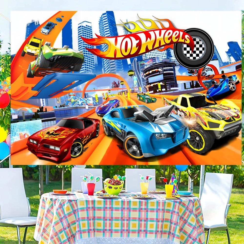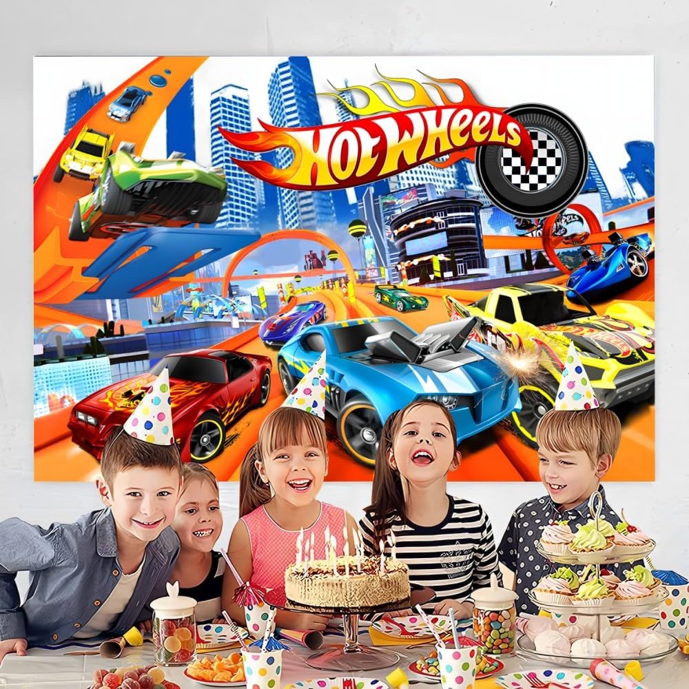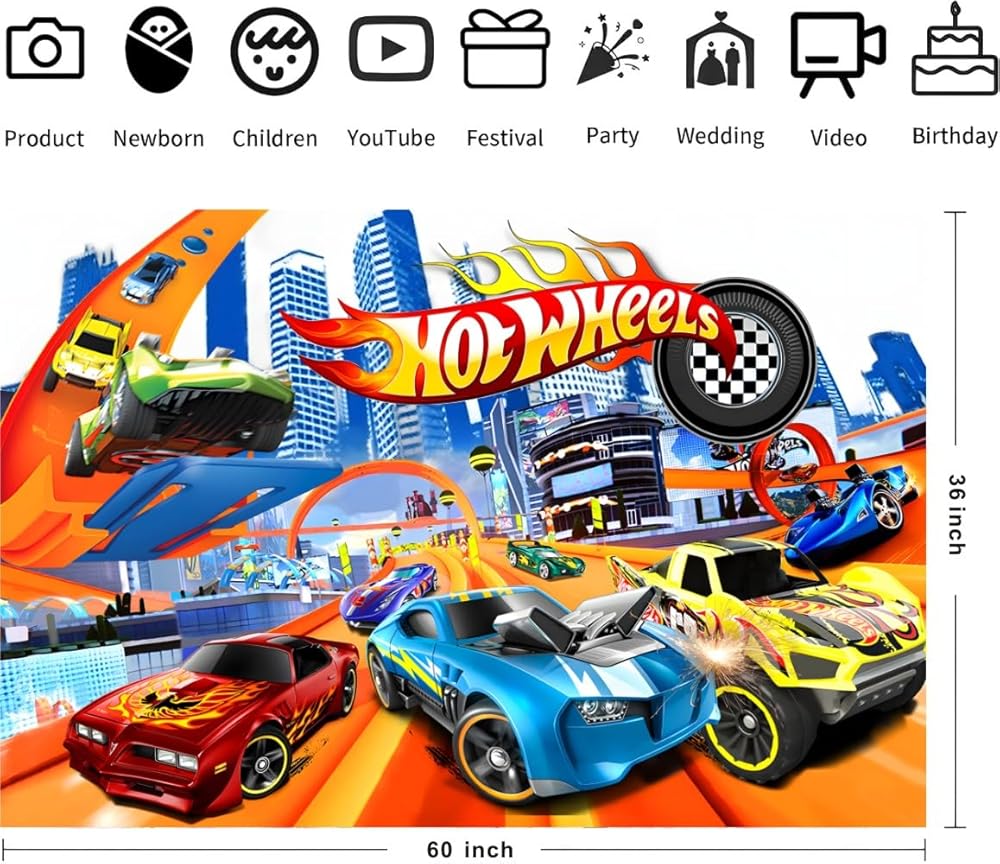 【لوازم حفلات أعياد الميلاد بنمط سيارات ساخنة】لافتة خلفية بعبارة Happy Birthday مقاس 59 × 35.4 انش، لافتة خلفية بعبارة Happy Birthday من هوت كارز تحظى بشعبية كبيرة بين الأطفال.