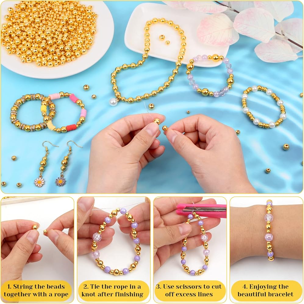 Gold Beads for Crafts: The beads are in shining gold colors, you can DIY jewelry making as a gift for your friends and family. Warm Tips: In order to prolong the service life of these gold beads, please take off the jewelry when bathing, sleeping, exercising, or doing other strenuous exercises, because prolonged contact with sweat will cause the surface to lose its luster more quickly.
