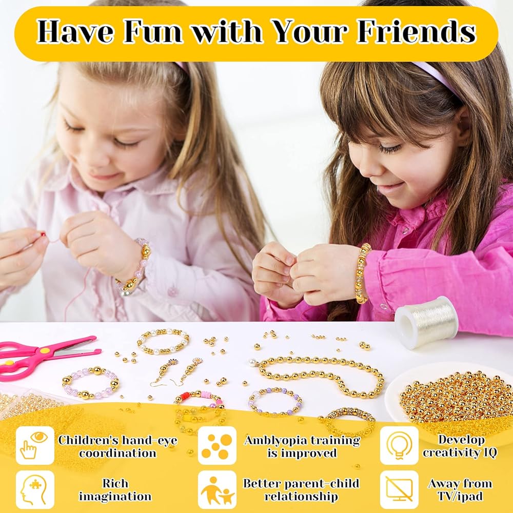 Explore Jewelry: The gold spacer beads kit has 3 Sizes, children make handcrafts that they find the most enjoyable. Creating golden beads craft not only relieves your stress and anxiety, but also can potentially improve the amblyopic eyes of children, hand-eye coordination, enrich their imaginations, and develop creativity IQ, while also creating a piece of jewelry with their own unique designs.
