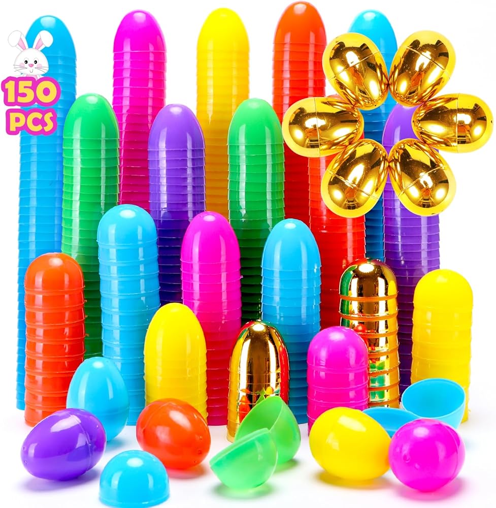 YEAHBEER 144 بيض عيد الفصح + 6 بيض ذهبية لملء مكافآت معينة، رائعة لألعاب صيد البيض عيد الفصح، لعبة وجوائز عيد الفصح، هدايا للمعلمين، هدايا عيد الفصح وأكثر! سلة عيد الفصح، ألعاب عيد الفصح. المواصفات: المواد: مصنوعة من بلاستيك البولي بروبلين السميك الآمن للطعام القابل لإعادة التدوير. اللون: أحمر، أصفر، أزرق، أخضر، وردي وأرجواني، 6 ألوان بالمقاسات الكلية: 2.4 × 1.57 بوصة/6 × 4 سم (الطول × القطر) الكمية: 24 قطعة لكل لون، 6 ألوان 144 بيضة إيست في الإجمالي + 6 بيض ذهبية لملء حلويات معينة، التطبيق: عيد الفصح، هدايا الأطفال، حشو حقائب الحفلات، أدوات موسيقية، الميزات: 1. تتضمن بيضة عيد الفصح 144 قطعة ألوان متنوعة زاهية (البرتقالي، الأصفر، الأخضر، الأزرق، البنفسجي والوردي الوردي) بيض عيد الفصح للحصول على مكافآت مفاجأة. 2. القطع ملونة بحواف ناعمة، مفصلات مصممة خصيصًا تحافظ على الأجزاء العلوية والسفلية معًا لسهولة التجميع. 3. استوف معايير السلامة الأمريكية. معتمد من اختبار السلامة. غير سام. تحذير عالي الجودة: خطر الاختناق - أجزاء صغيرة. غير مخصصة للأطفال دون سن 3 سنوات.