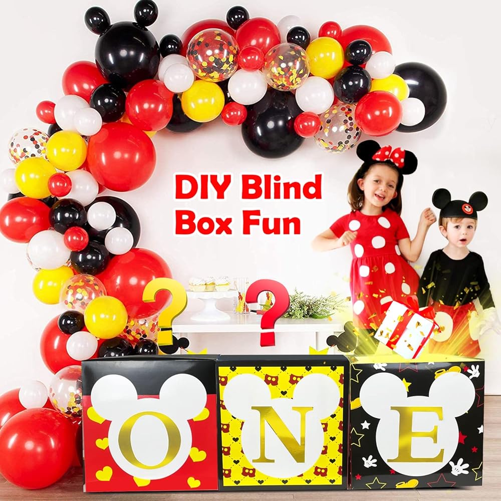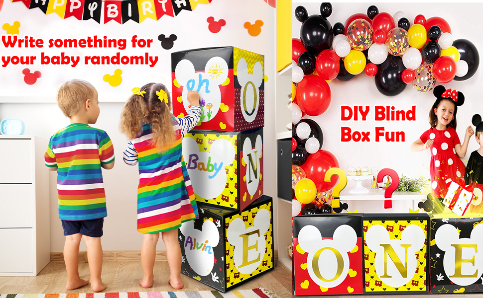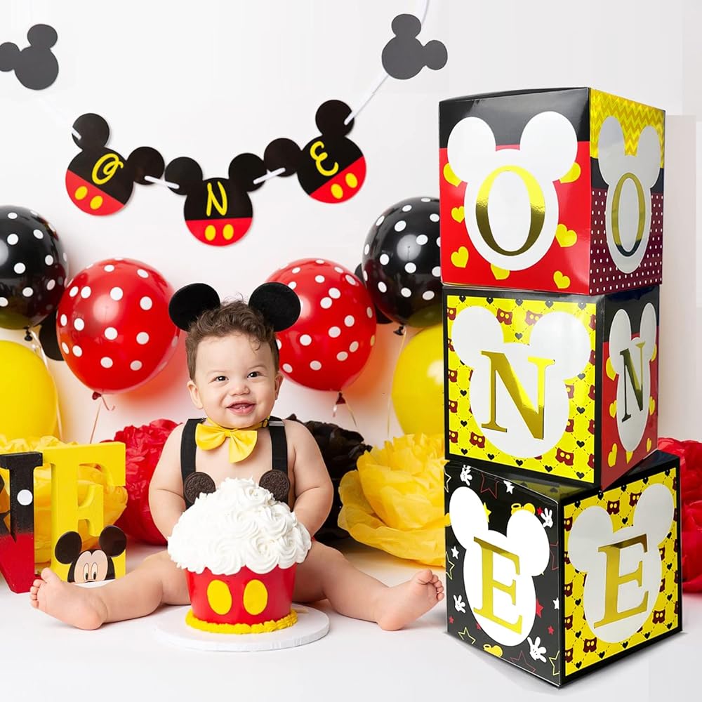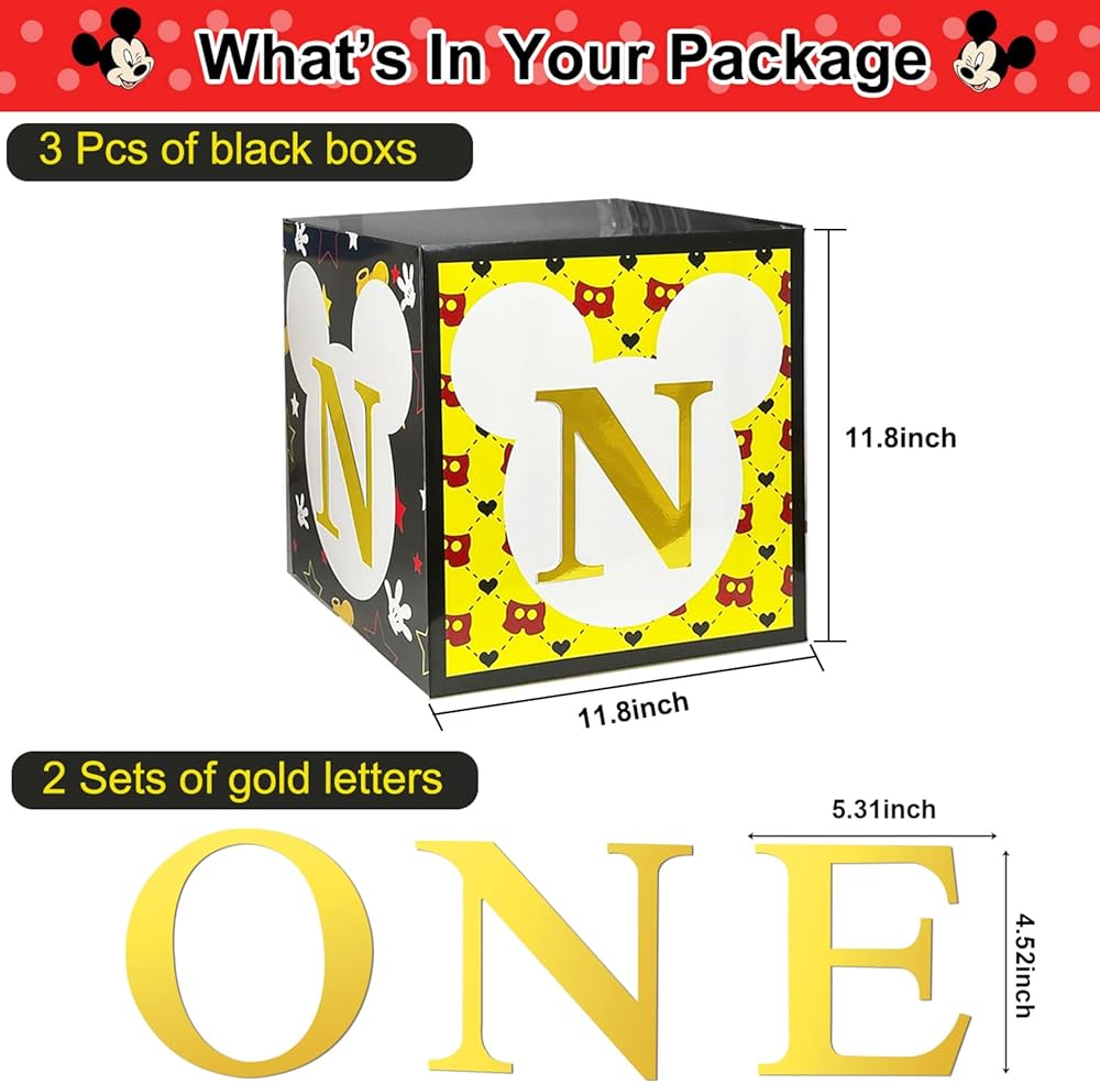 ❤ صناديق حفلات استقبال المولود الأول من ميكي - صناديق ماوس باللون الأسود والأصفر (مقاس 11.8 انش × 11.8 انش × 11.8 انش) لجميع حفلات أعياد الميلاد وحفلات استقبال المولود الجديد وحفلات الكشف عن جنس المولود وحفلات أعياد الميلاد بطابع ميكي وحفلات عيد الميلاد الأول وحفلات الأطفال وحفلات الأطفال الأخرى. زين حفلتك بهذه الصناديق، واجعلها أكثر جاذبية، وأبهر ضيوفك، والأهم من ذلك دع طفلك وعائلتك يستمتعون بحفلة استقبال المولود على شكل ماوس