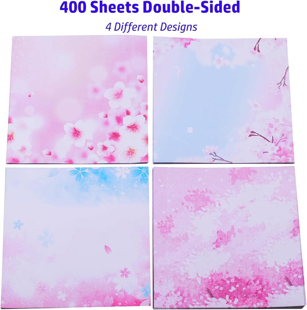 تصميم نمط جميل: 400 ورقة ورق أوريغامي ملون جميل، هناك 4 تصميمات أنماط مختلفة، 100 من كل تصميم. إنها تتفوق في الصنعة واللون والتصميم والمتانة. كلا الجانبين لهما ألوان مختلفة، بغض النظر عن كيفية طيها، سوف رؤية لون الجمال