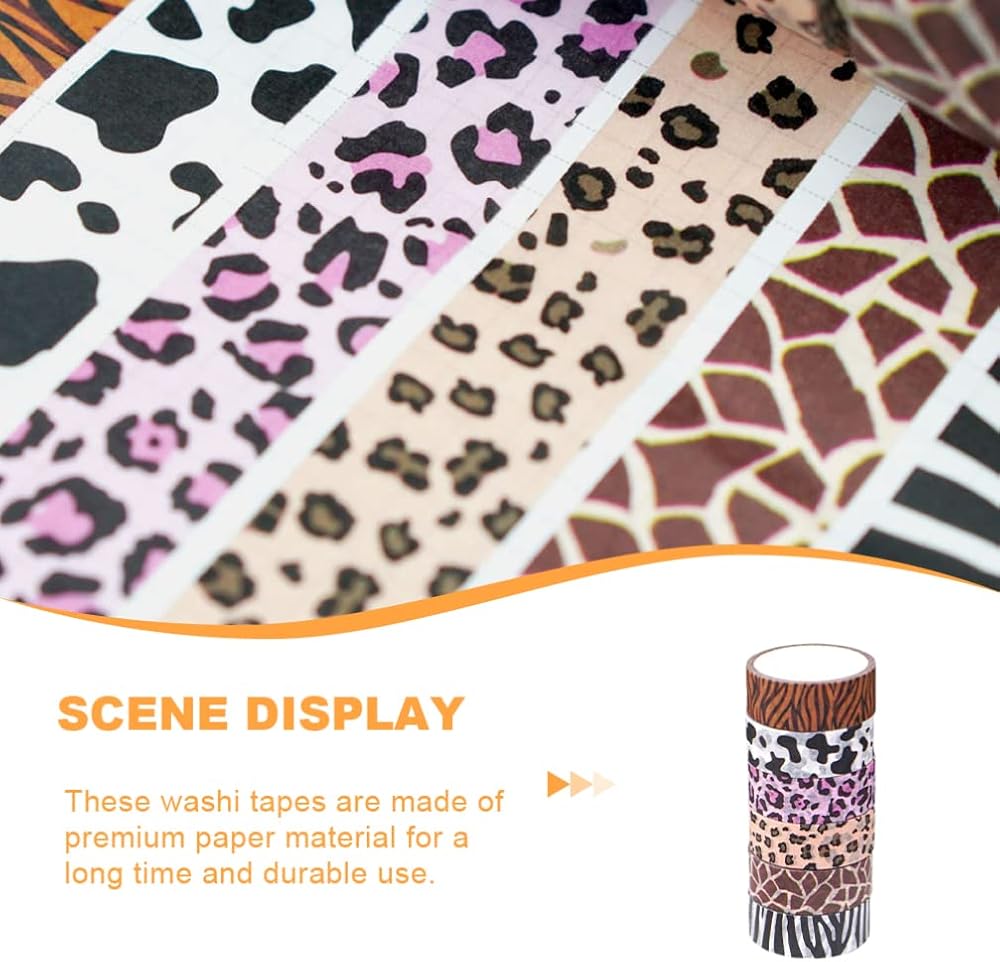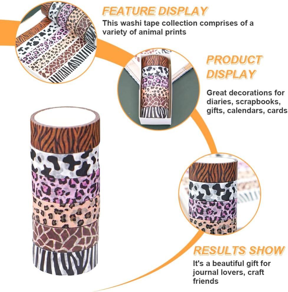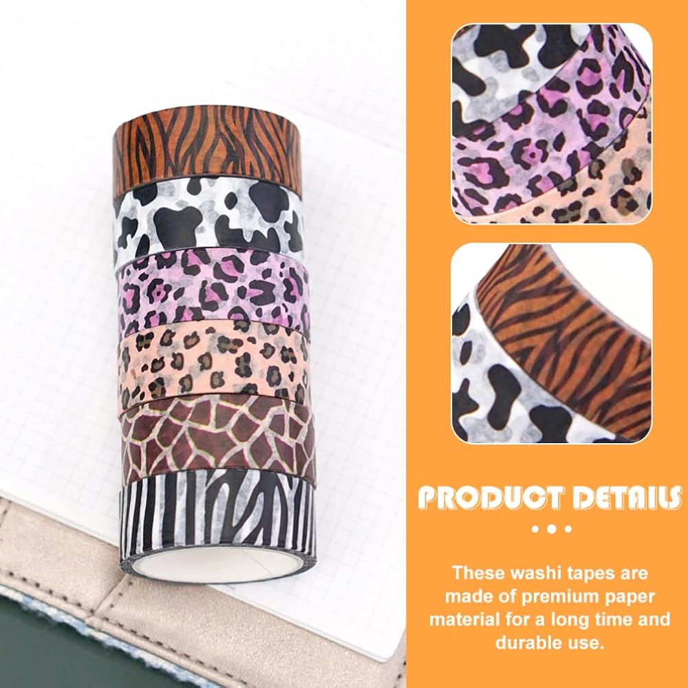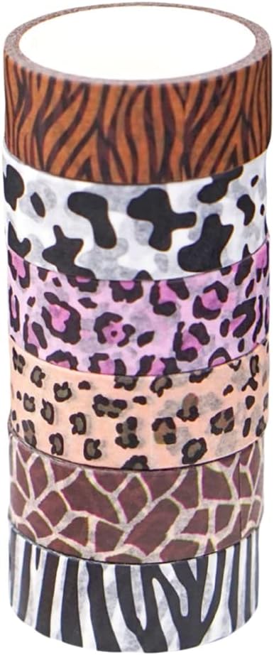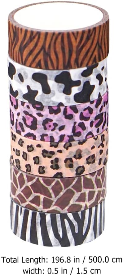 6 Rolls Animal Washi Tape Leopard Cows Zebra Print Scrapbook Masking Tape Decorative Stickers for DIY Crafts Journal Planner Gift Wrapping