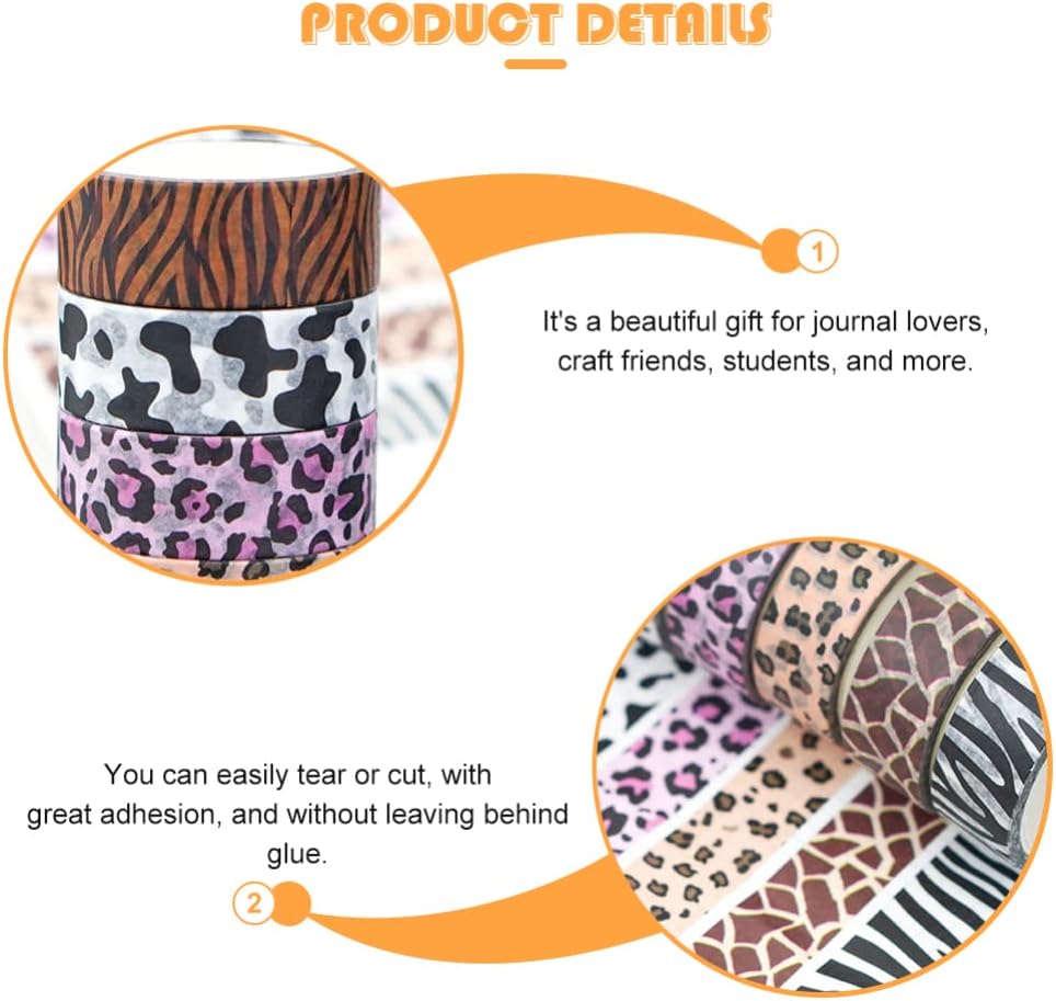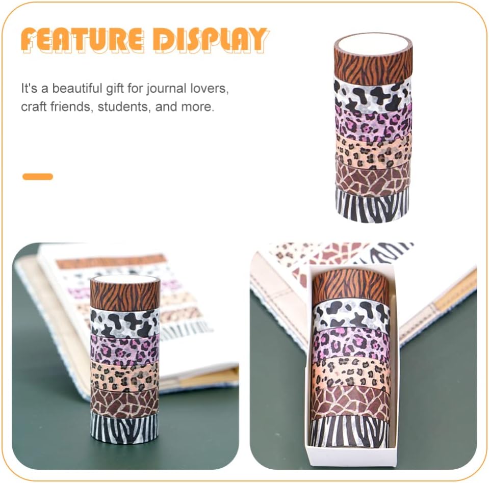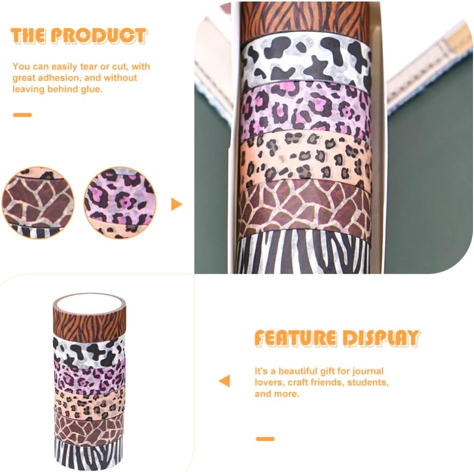 6 Rolls Animal Washi Tape Leopard Cows Zebra Print Scrapbook Masking Tape Decorative Stickers for DIY Crafts Journal Planner Gift Wrapping