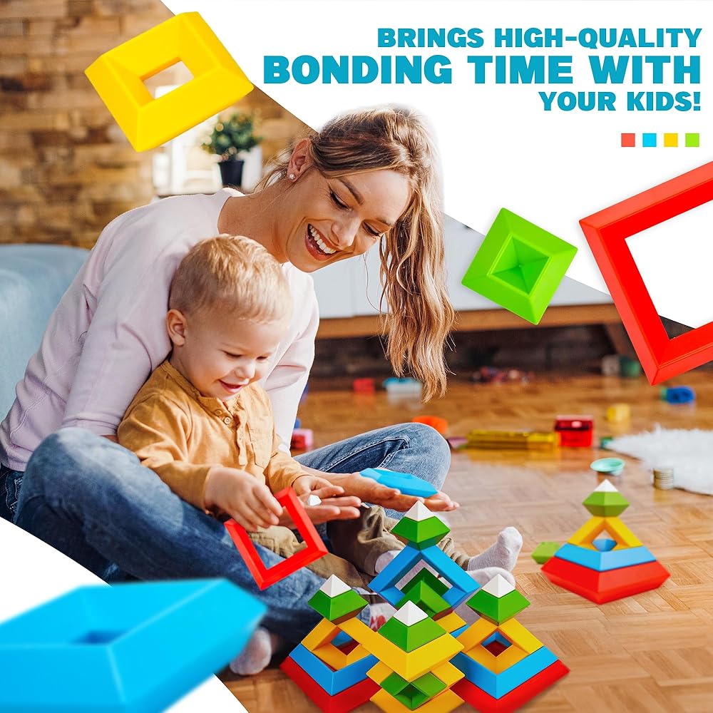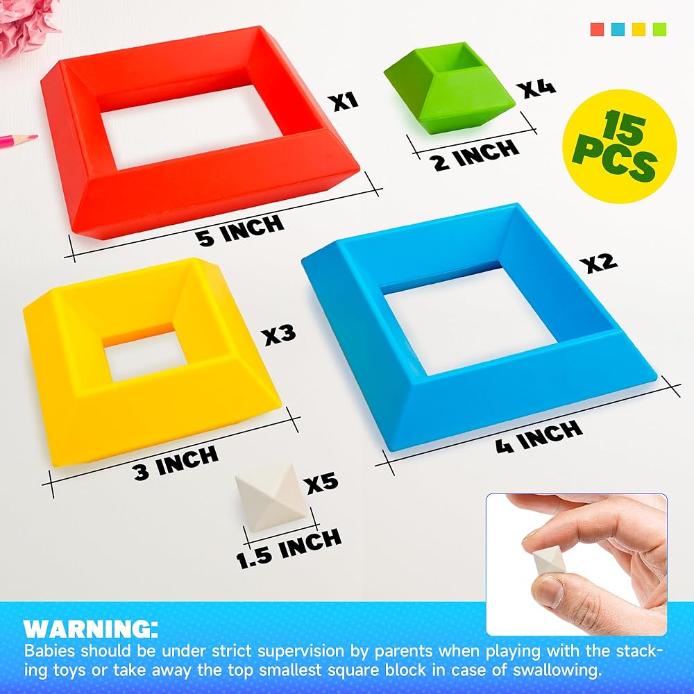 ألعاب التراص الهرمية الخيالية - ألعاب مونتيسوري للأطفال بعمر 3 سنوات تأتي مع 30 قطعة بلاستيكية بخمسة ألوان وأشكال وأحجام مختلفة. يتم تضمين أكثر من 80 مجموعة تراص سهلة أو معقدة في دليل المستخدم. هذه الألعاب التعليمية الممتعة للعلوم والتكنولوجيا والهندسة والرياضيات تثير بشكل كبير خيال وإبداع الأولاد والبنات الذين تتراوح أعمارهم بين 1 2 3 4 5.