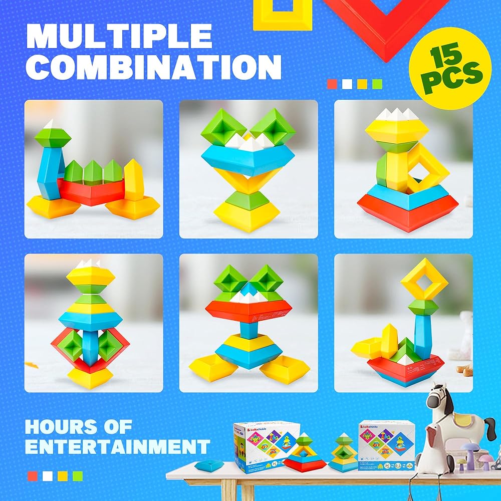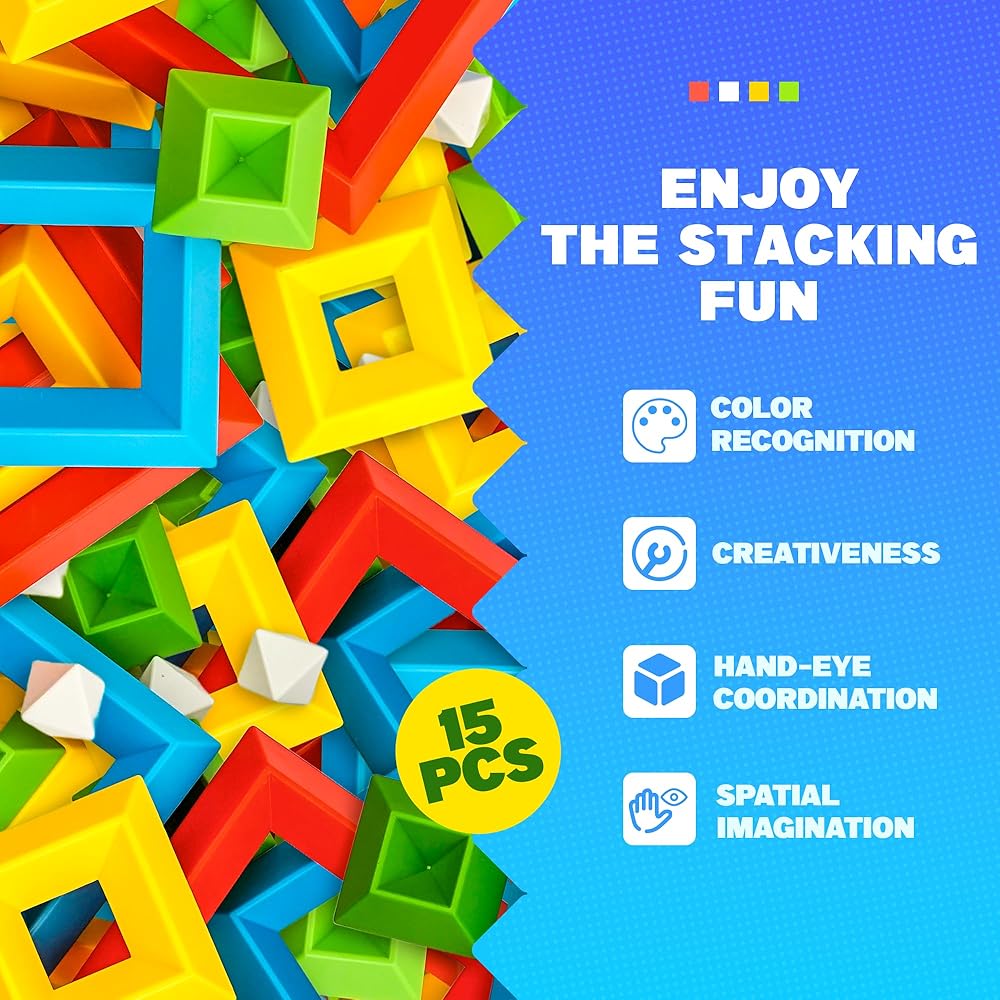 ألعاب BELLOCHIDDO Montessori لعمر 2 3 4 5 سنوات من العمر - كتل للأطفال الصغار 1-3،15 قطعة من كتل البناء المكدسة للأطفال الصغار 1-3، ألعاب الأطفال الصغار الذين تتراوح أعمارهم بين 1-2 لعبة تعليمية تعليمية لمرحلة ما قبل المدرسة