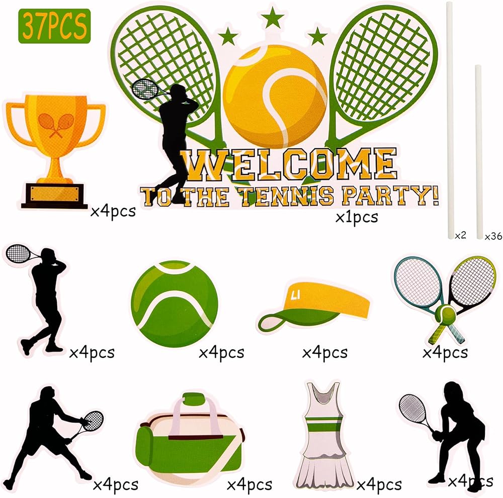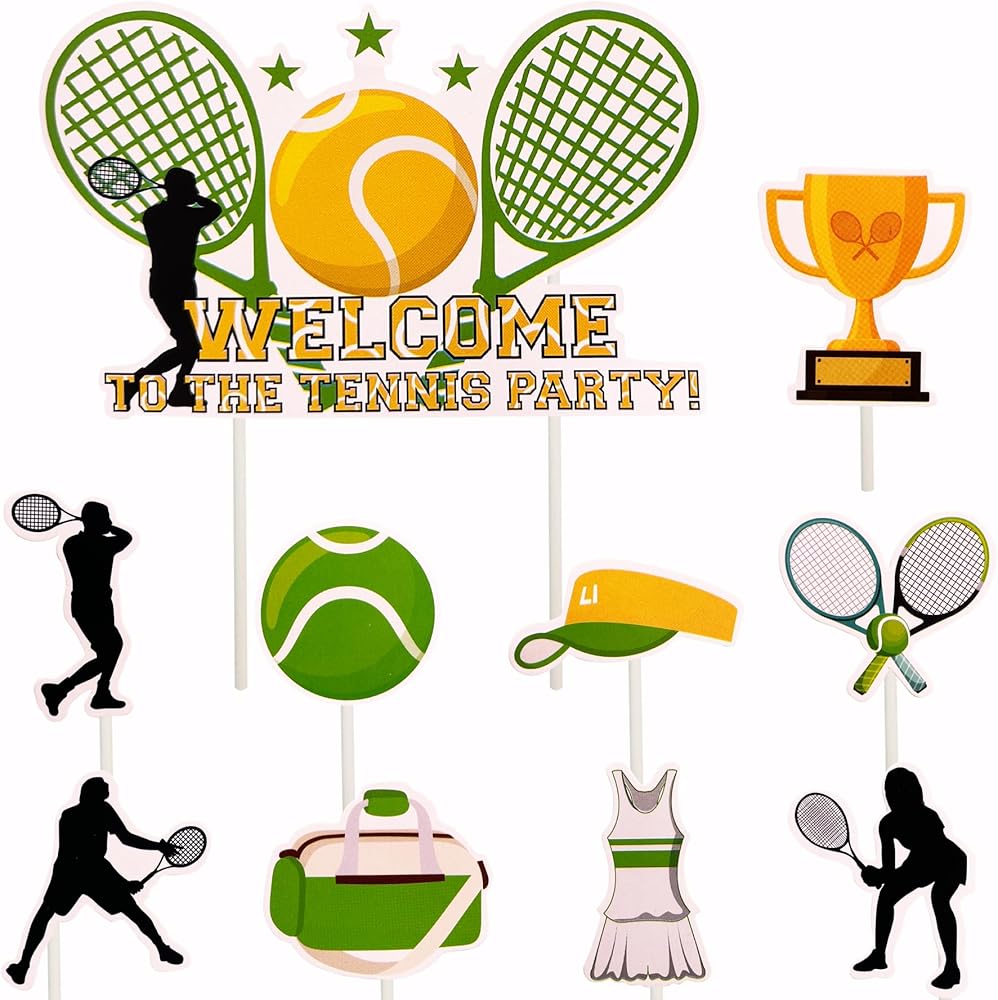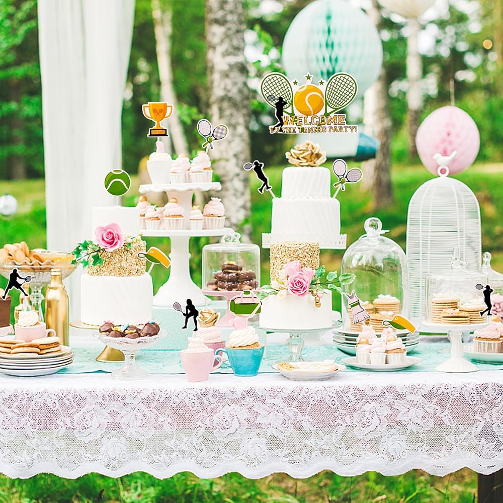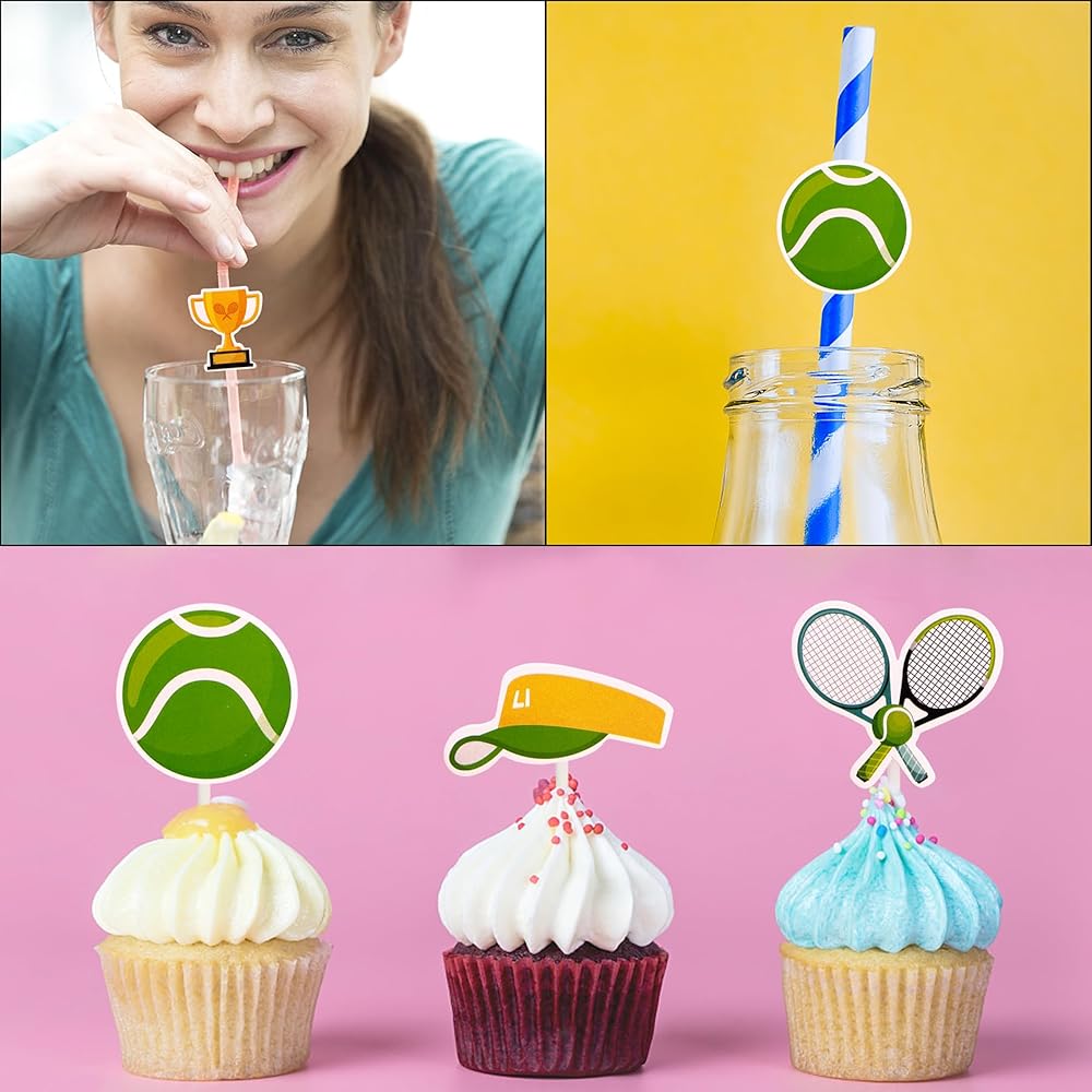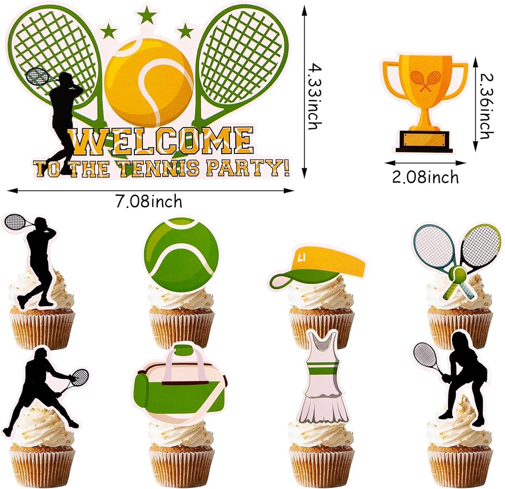 الاستخدامات - لوازم وديكورات مثالية للحفلات للكب كيك أو الكيك أو الفطيرة أو المافن أو الآيس كريم أو الفواكه أو الحلوى أو الجبن أو أي طبق ومقبلات طعام وما إلى ذلك. لحفلات استقبال المولود بطابع كرة التنس وحفلات أعياد الميلاد وحفلات التقاعد وغيرها من الحفلات ذات الطابع الرياضي للتنس.