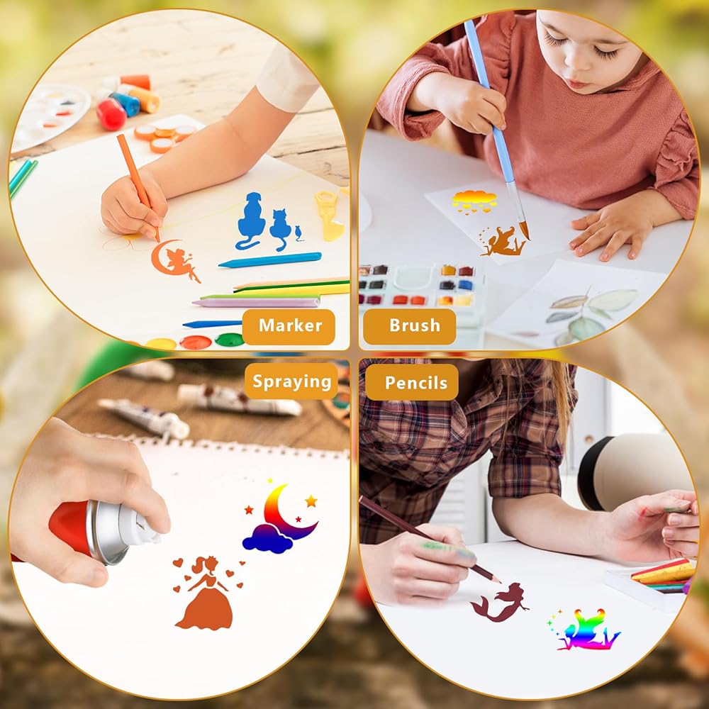 • 【مجموعة استنسل على شكل حيوانات مكونة من 60 قطعة】--تتميز الاستنسل بمجموعة متنوعة من الجنيات المختلفة، بما في ذلك الجنية والقلاع وحيد القرن وما إلى ذلك. 60 قطعة غير متكررة مما يسمح للأطفال بابتكار مجموعة واسعة من التصميمات وتجربة ألوان وتركيبات مختلفة.