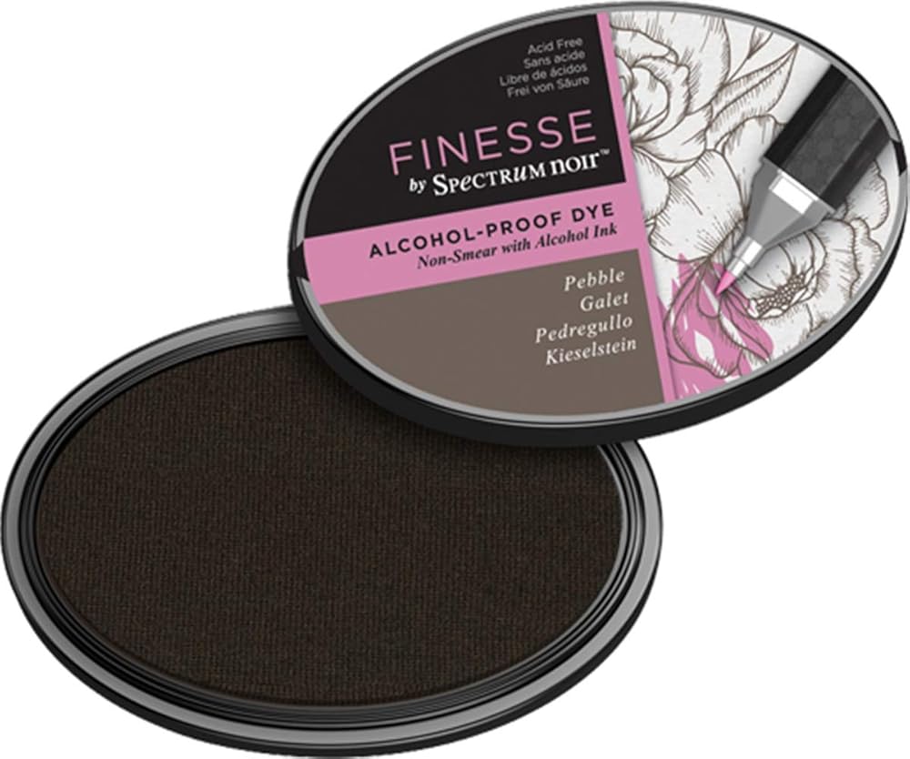 Finesse by Spectrum Noir Alcohol-Proof Dye Inkpad has been developed to give you a crisp detailed impression when stamping. This ink pad is fast drying and gives you guaranteed smear-free results when using alcohol markers as your chosen colouring medium. Team the Finesse Alcohol Proof Inkpads with your Spectrum Noir alcohol markers for perfect results every time. Product Information: Inkpad Colour: Pebble Alcohol-proof dye Non-smear Inkpad measures: 9.5 x 6.5cm