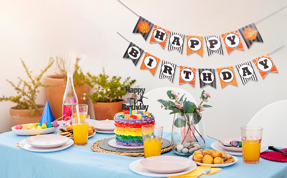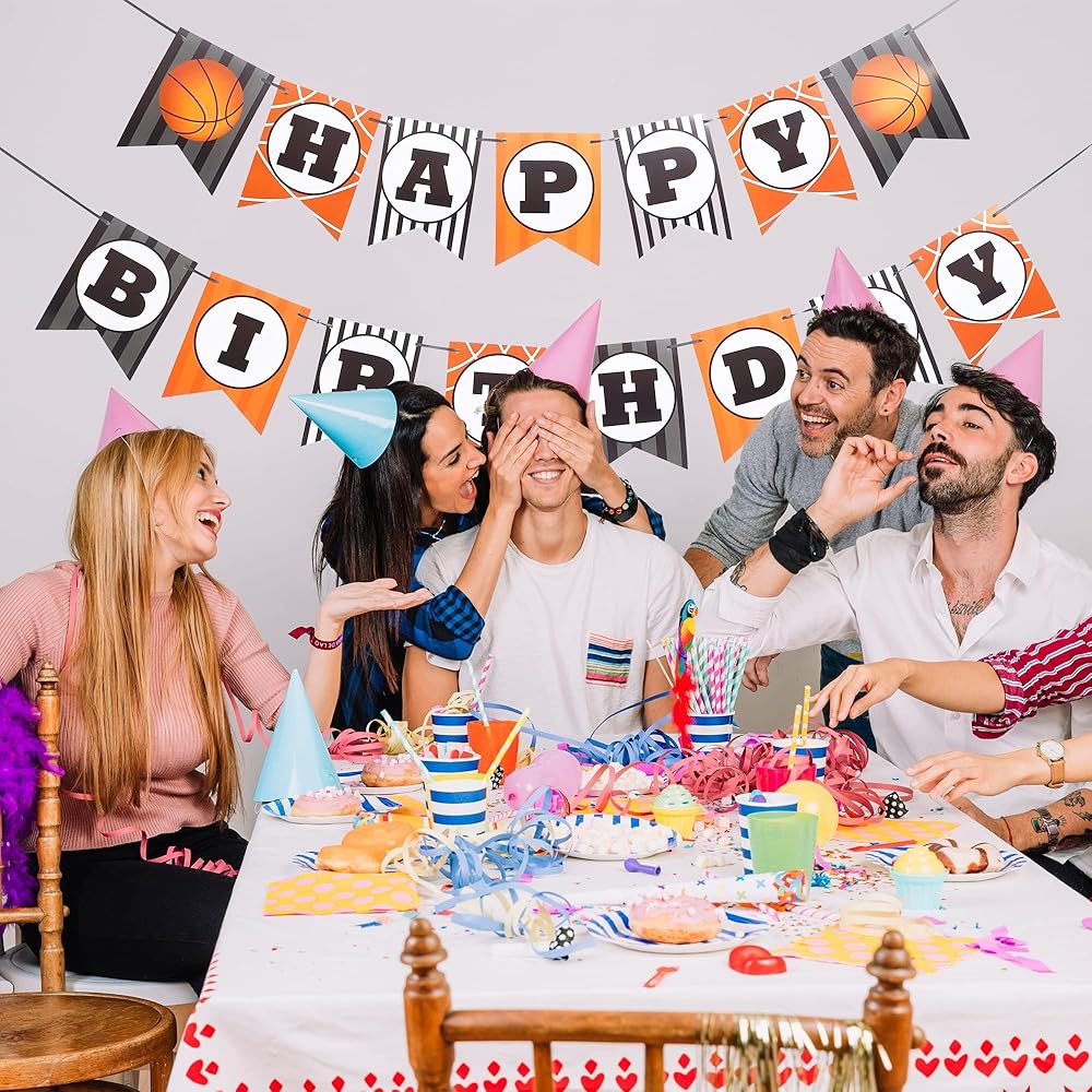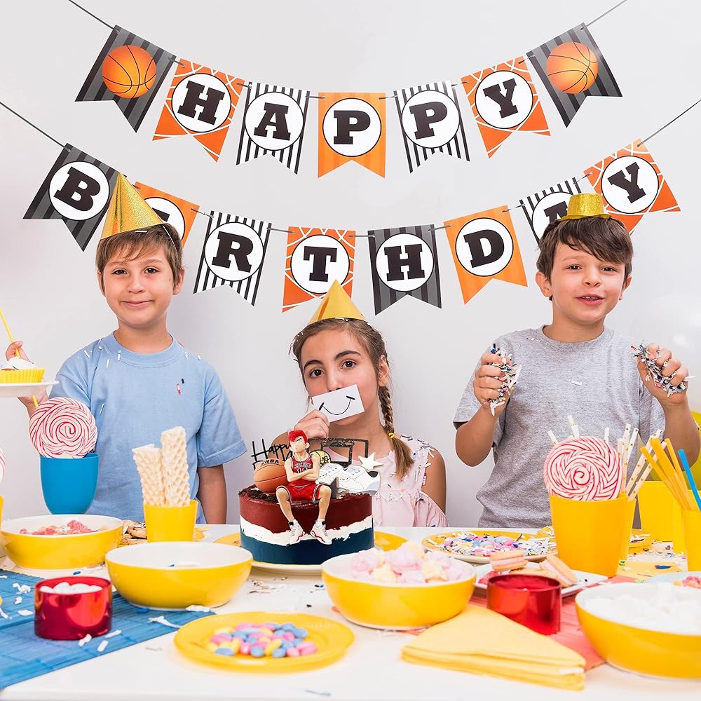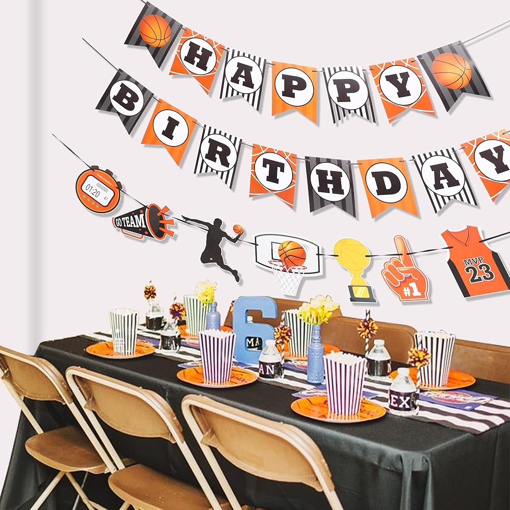 BoKin Basketball Birthday Decorations - Basketball Happy Birthday Banner, Slam Dunk Party Decoration Supplies Kids Teenagers Boys B-day Photo Prop Pennant Ideas