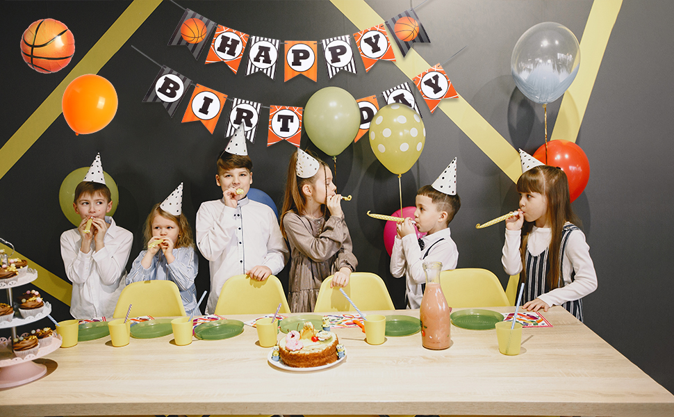 RELIABLE QUALITY: The basketball birthday party banner is made of thick cardboard, durable and non fading. Latex balloons can be filled with air or helium to float and are not easily ruptured. Tying up the inflation port of the balloon can maintain this state for a long time. Aluminum film balloons are three-dimensional, and its shape is closer to the basketball