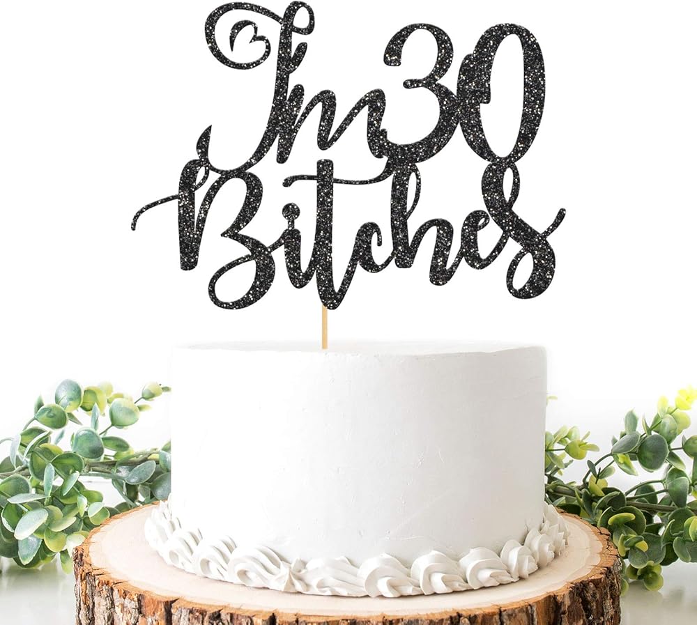 Helewilk Black Glitter I'm 30 Bitches Cake Top، ديكور كعكة عيد ميلاد سعيد 30، مضحك 30 عامًا لوازم تزيين حفلات أعياد الميلاد للرجال والنساء