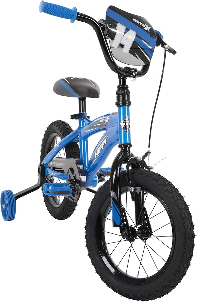 دراجة للأولاد مقاس 14 انش مع عجلات تدريب قابلة للإزالة مثالية للأعمار من 4 إلى 6 سنوات بارتفاع 39-44 انش؛ تفاصيل مثل الإطارات الواسعة والمقابض المريحة تجعل رحلاتهم الأولى متعة حقيقية