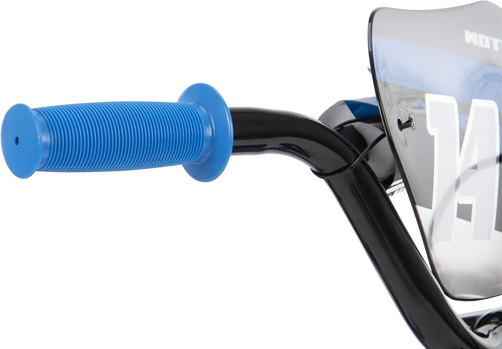 ستجعل لوحة مقود الدراجة النابضة بالحياة طفلك يشعر وكأنه منافس أفضل بي ام اكس أثناء تسابقه على الرصيف؛ يبدو واقي السلسلة الشفاف الواقي رائعًا بجوار الدواسات الزرقاء الساطعة