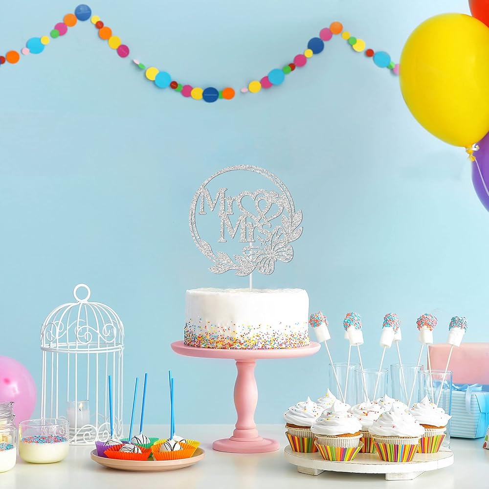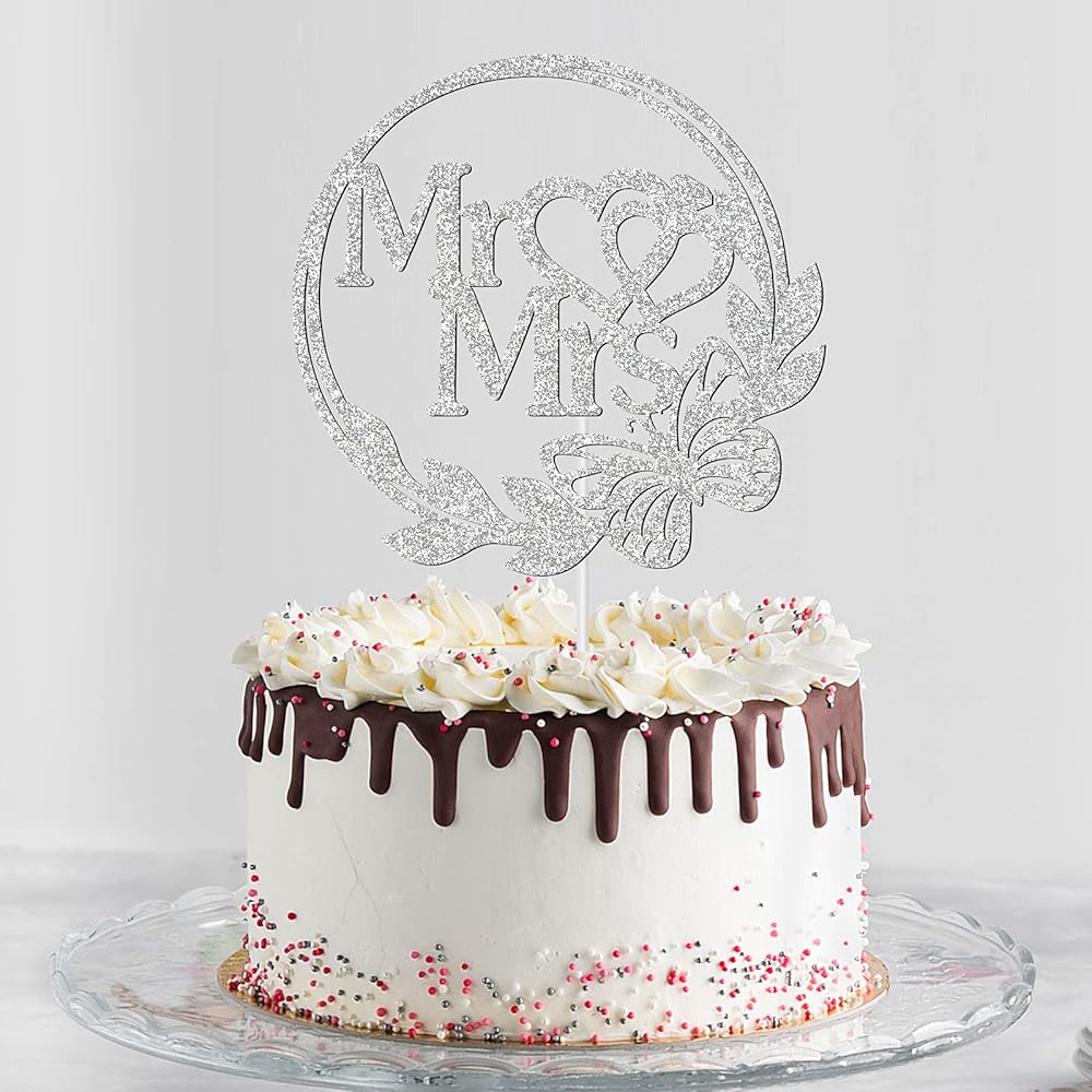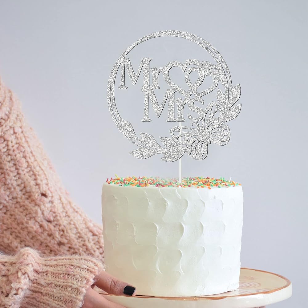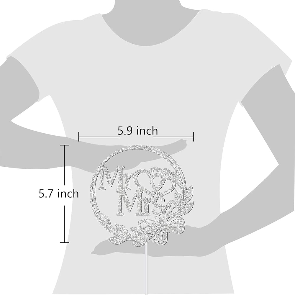 حجم رائع: قطعة واحدة من زينة الكيك "Mr Mrs"، مقاس حوالي 5.9 × 5.7 بوصة، تناسب الحجم القياسي أو معظم أحجام الكعك.