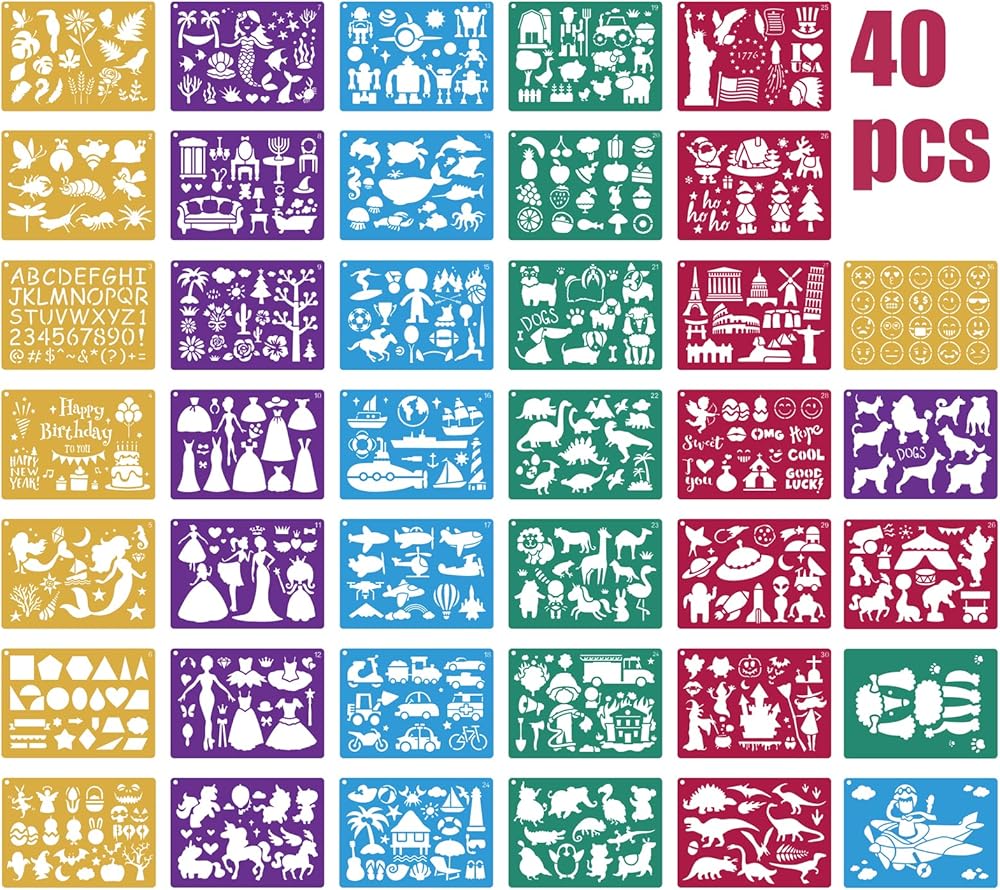 【Kids Art Stencils】A set of 40 children's stencils with a variety of painting options. All the patterns can be mixed and matched at will. These will enhance children's imagination and creativity.