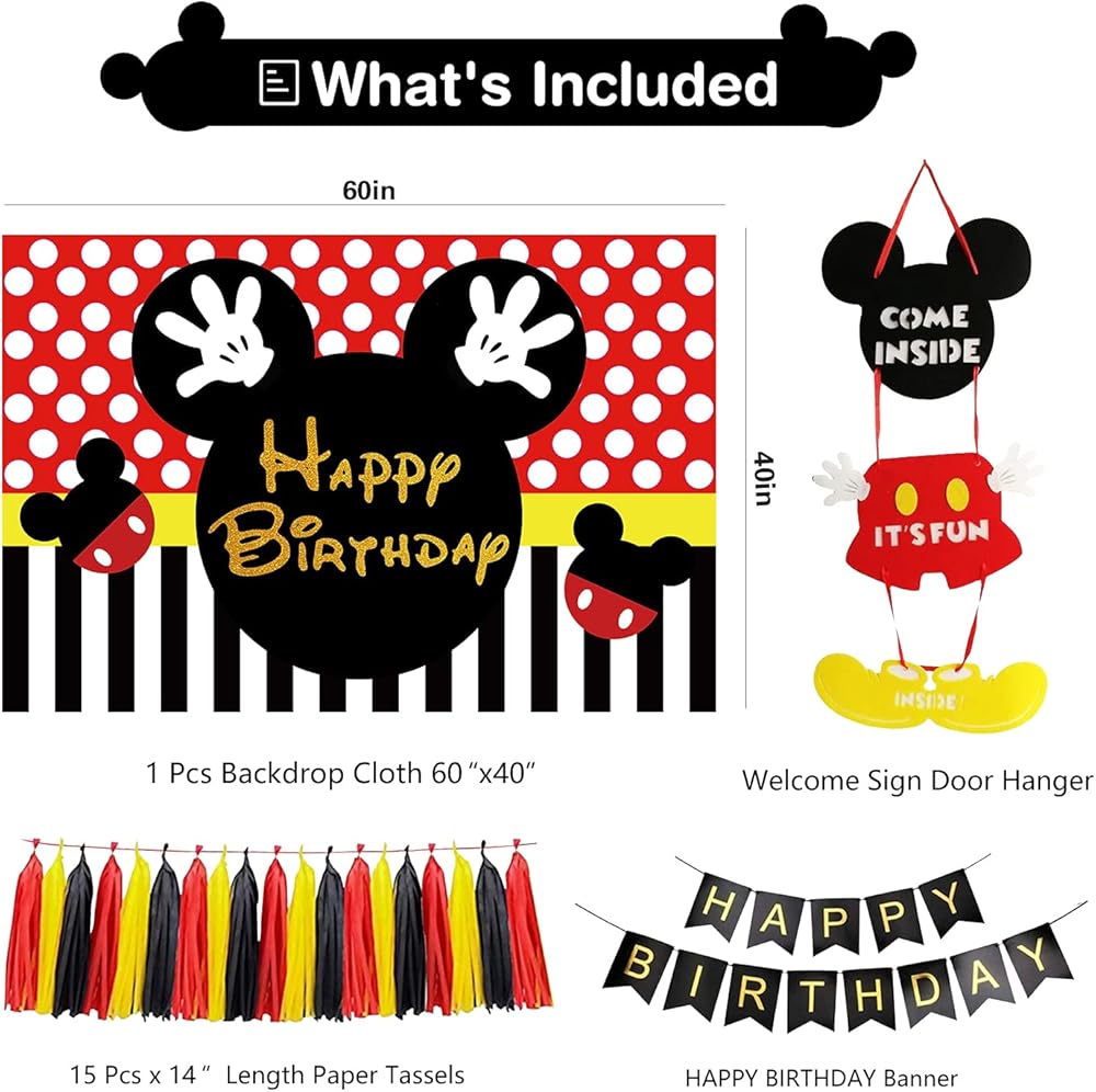 【استخدامات متعددة】يمكن استخدام هذه المجموعة في حفلة عيد ميلاد طفلك الصغير، والحفلات التي تحمل طابع ميكي، والحفلات ذات الطابع الأسود والأحمر والأصفر، وحفلات استقبال المولود. يمكنك أيضًا تزيينها في غرفتك. إذا كنت تخطط لحفلة عيد ميلاد جذابة، فيجب أن تكون لوازم حفلات ميكي هذه خيارًا جيدًا. ستخلق مفاجأة كبيرة والكثير من المرح