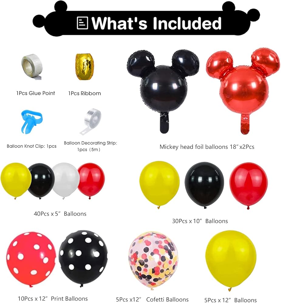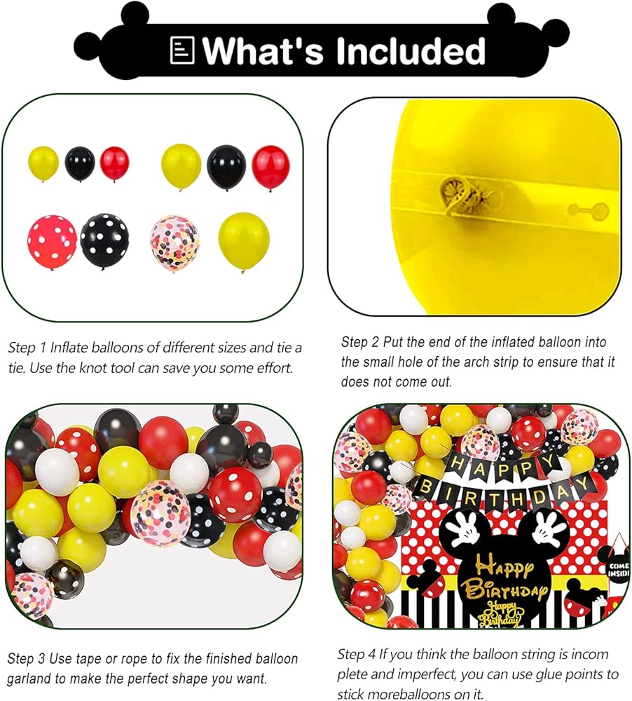 【هدية رائعة للحفلة】قد تتلاشى الذكريات ولكن الصور تدوم إلى الأبد. مجموعة قوس البالونات الخاصة بنا باللون الأحمر والأصفر والأسود وتتطابق مع خلفية بنمط ميكي، وهي مناسبة جدًا للحفلات ذات الطابع الماوس. سيحتفل الجميع بحفلة عيد الميلاد ويحصلون على الصورة المثالية على فيسبوك، مما يترك أفضل الذكريات