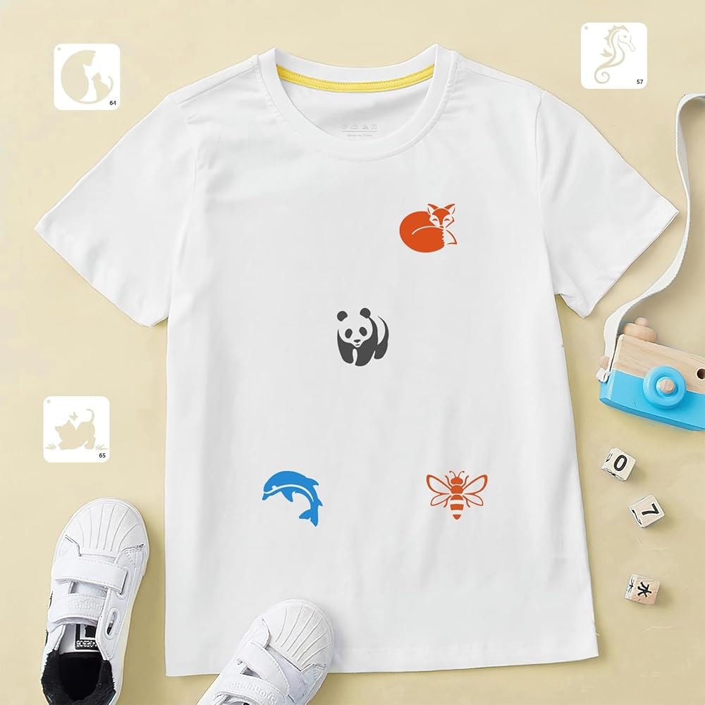【مجموعة استنسل للحيوانات من 100 قطعة】--تتميز الاستنسل بمجموعة متنوعة من الحيوانات المختلفة، بما في ذلك طائر الديناصور وحشرات الفراشة وما إلى ذلك. 100 قطعة غير متكررة مما يسمح للأطفال بابتكار مجموعة واسعة من التصميمات وتجربة ألوان وتركيبات مختلفة.