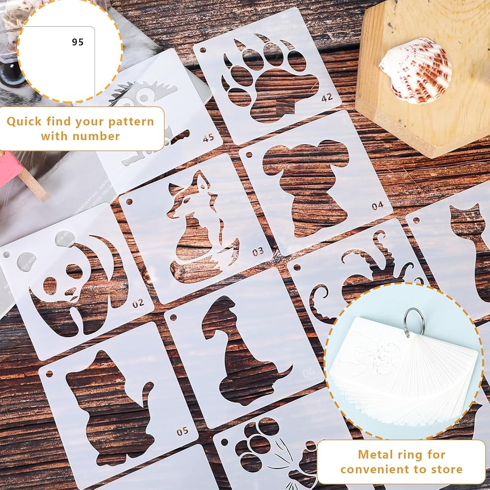 100 قطعة استنسل حيوانات للحرف اليدوية من سريزدان قابلة لإعادة الاستخدام --- لا يوجد تصميم متكرر ودع خيالك ينفجر!