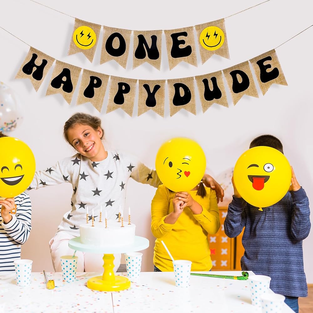Unique Design - Large black bold letter against linen background, decorated with 2 smile face, cute and delicate, which will create warm and joyful atmosphere for the party.