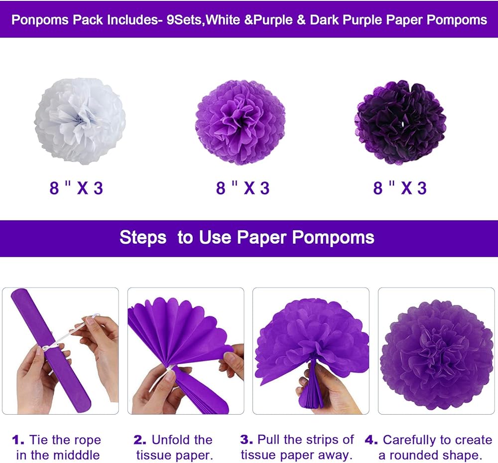 • ❄ مجموعة بالونات عالية الجودة】زينة الحفلات الأرجوانية هذه مصنوعة من اللاتكس عالي الجودة، أكثر سمكًا بنسبة 20% من بالونات اللاتكس العادية لتوفير بيئة آمنة وغير سامة وقوية وتدوم طويلاً. كرات ورقية مصنوعة أيضًا من ورق عالي الجودة صديق للبيئة. مناسب للنساء الحوامل والأطفال.