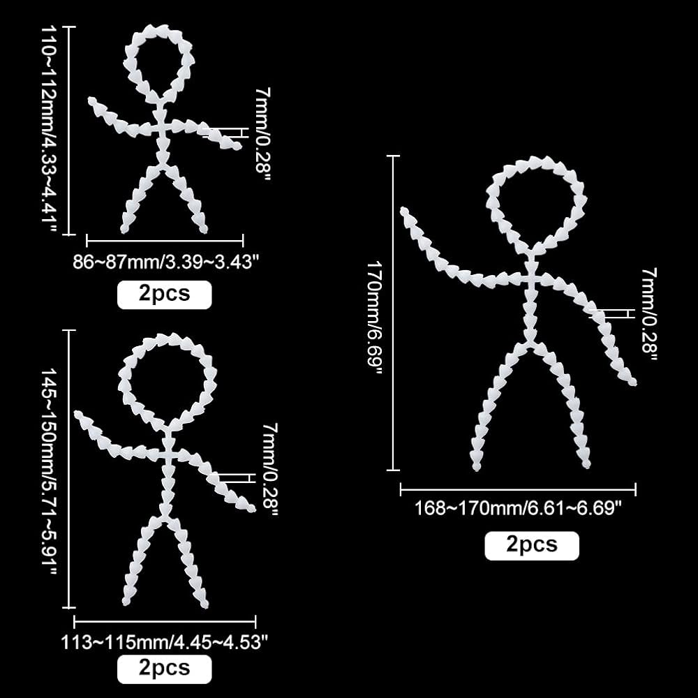 تشمل العبوة: قطعتان من كل مقاس، سوف تحصل على 6 قطع من الهياكل العظمية بالكامل، تبدو مرنة ويمكن أن تصنع العديد من الأوضاع. رائعة للحيوانات القطيفة والأشخاص والكرتون وما إلى ذلك.
