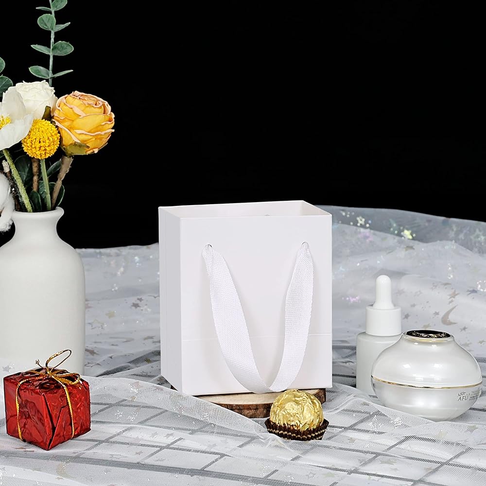 مقابض الشريط: المقابض لامعة الملمس، ولكنها منسوجة وقوية. هذه حقائب متوسطة الحجم لجميع المناسبات يمكنها حمل المجوهرات والشموع والأكواب.