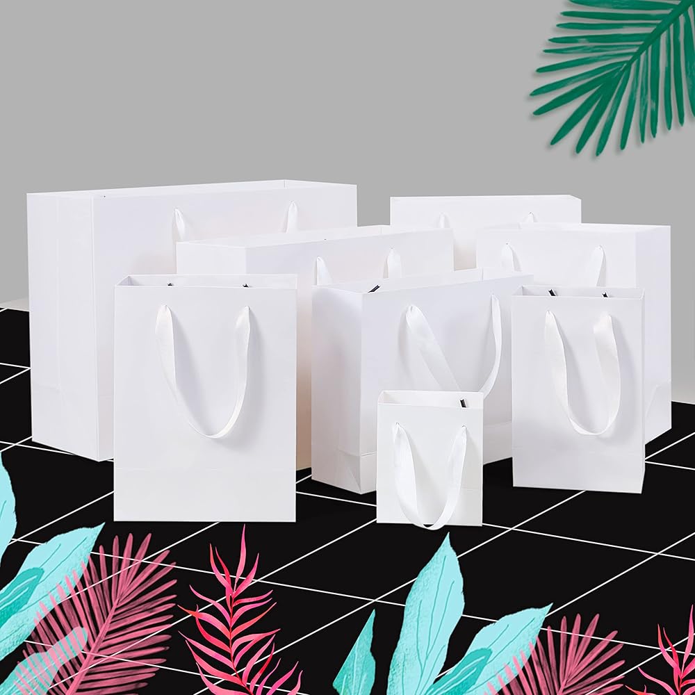 استخدام واسع: الحقائب الورقية البيضاء هي الخيار الأفضل لحقائب البيع بالتجزئة، وحقائب البضائع، وحقائب الحفلات، وحقائب الهدايا، وحقائب هدايا الزفاف، وحقائب الهدايا، وحقائب عيد الشكر، وعيد الأب وغيرها من حقائب هدايا العطلات.