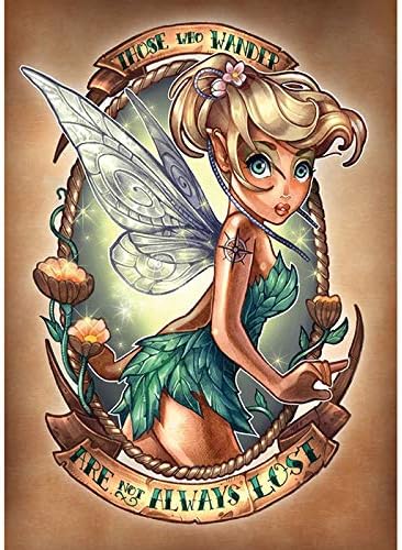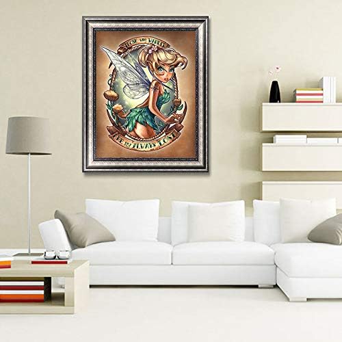 مجموعة طلاء ألماس 5D مجموعة طلاء بالأرقام للبالغين أو الأطفال، لوحة تطريز ماسية من حجر الراين الكريستالي من Tinkerbell Princess للديكور، مقاس 16 بوصة × 12 بوصة