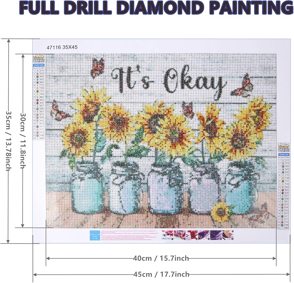 🌻【قماش مقاوم للماء عالي الجودة】القماش الفني الماسي الخاص بنا مصنوع من مادة سميكة مقاومة للماء ومصممة لتدوم طويلاً. تضمن الطباعة عالية الوضوح رموزًا واضحة وسهلة القراءة ولن تتلاشى بمرور الوقت. يحافظ الغطاء الشفاف على الصورة لزجة ويثبت الماس في مكانه، بينما يضمن التصميم غير السام والمذاق سلامتك أثناء العمل. حجم القماش هو 13.78 × 17.7 بوصة، مع مساحة لصق كاملة تبلغ 11.8 × 15.7 بوصة.