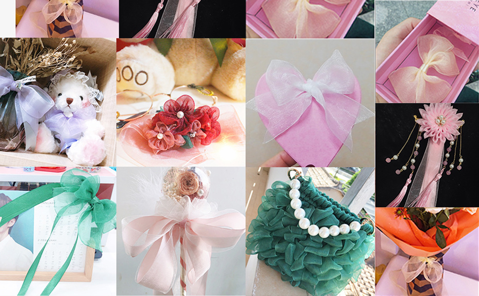 - شريط الأورجانزا - يأتي كل شريط مع عبوة رائعة، مما يجعله مثاليًا لتغليف الهدايا وإضافة سحر إلى أي حرفة يدوية.