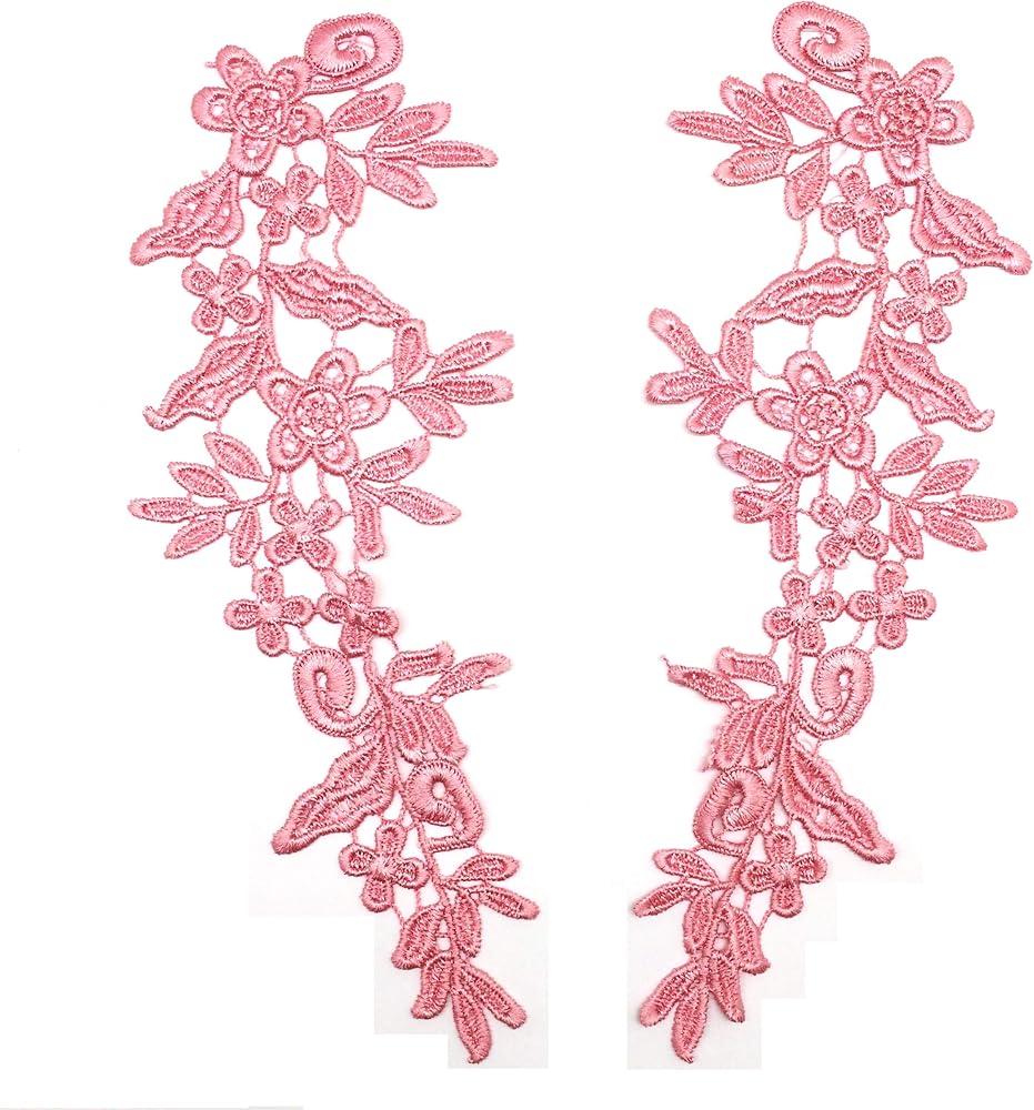 PEPPERLONELY 1 Pair Lace Flower Applique Patches Embroidery Sewing Craft Decoration, 24.5 X 8.5cm