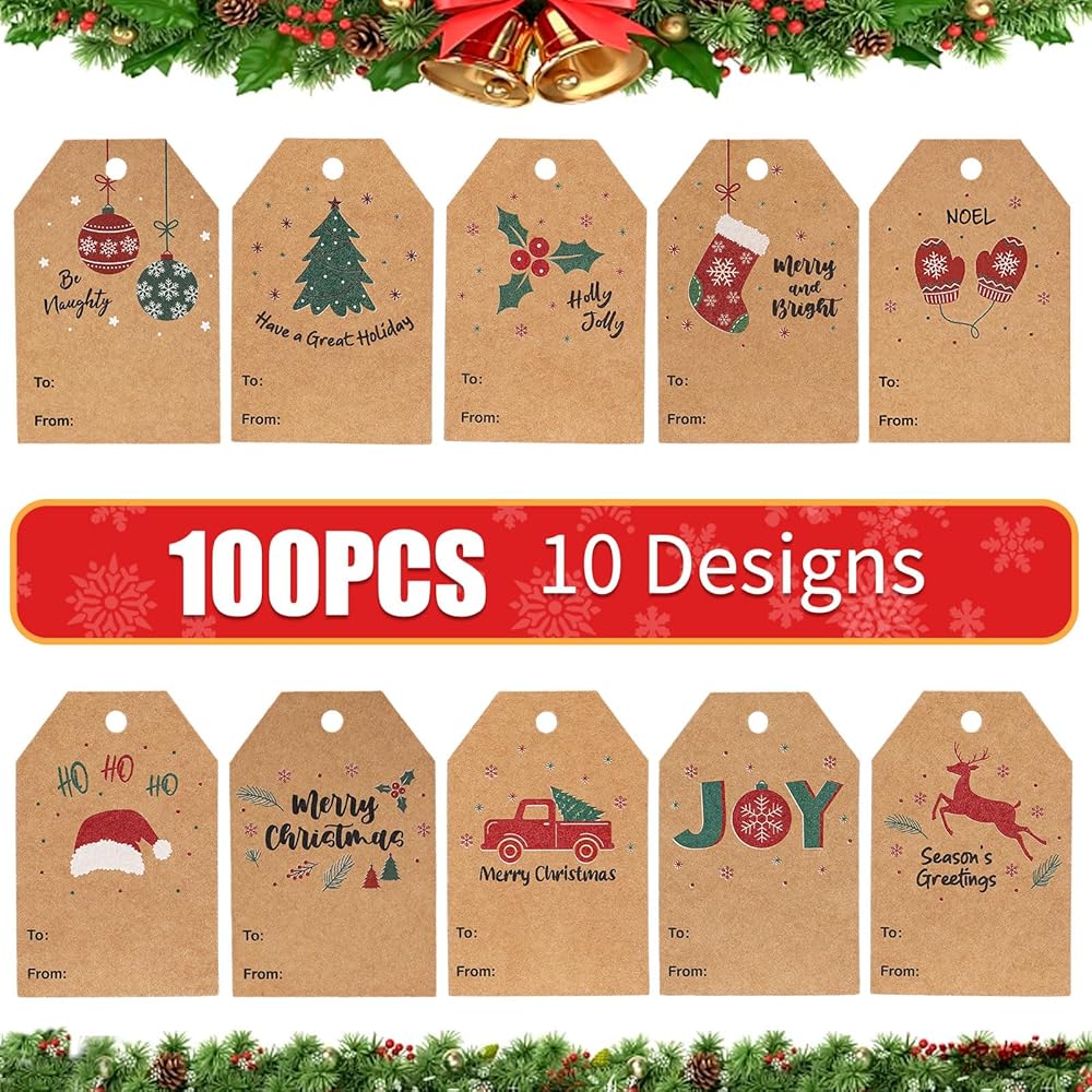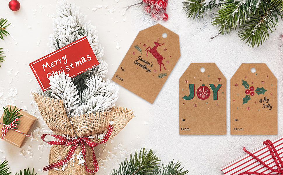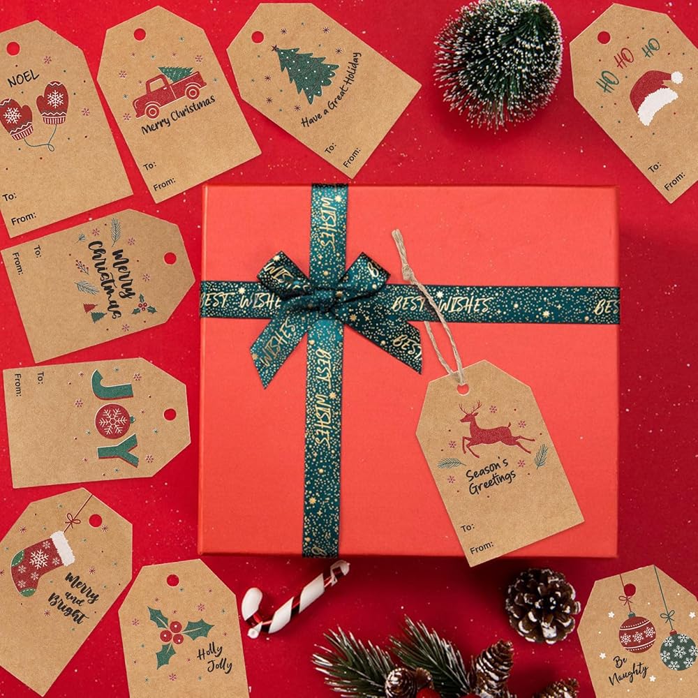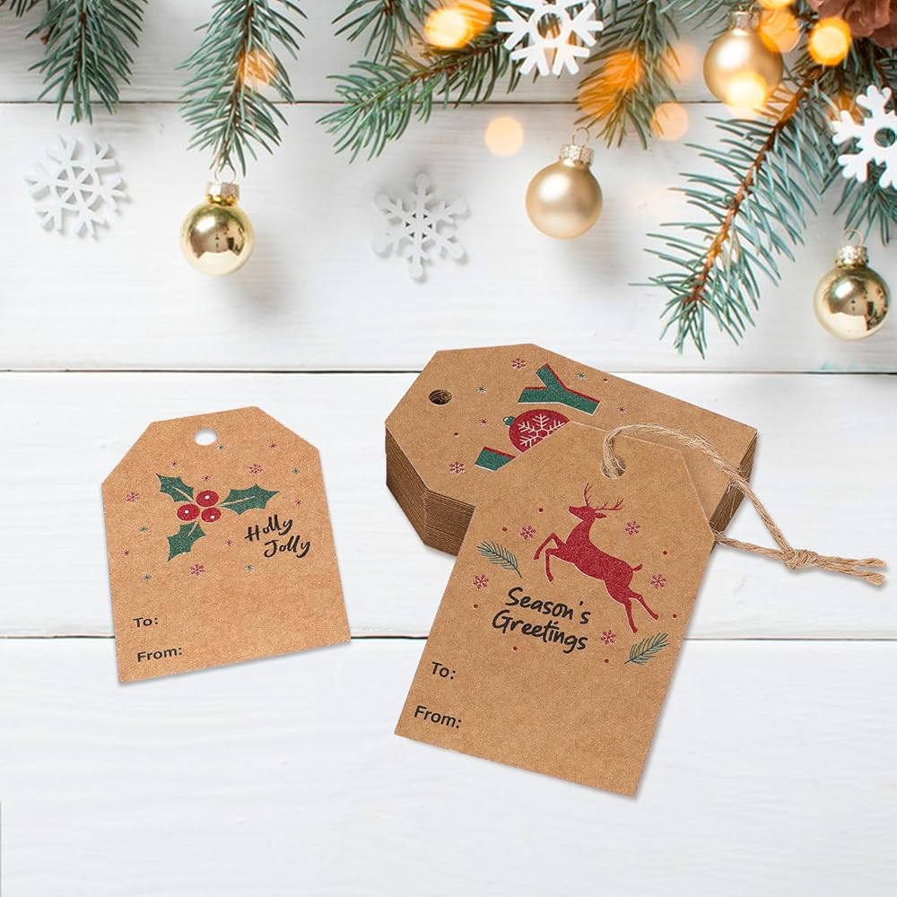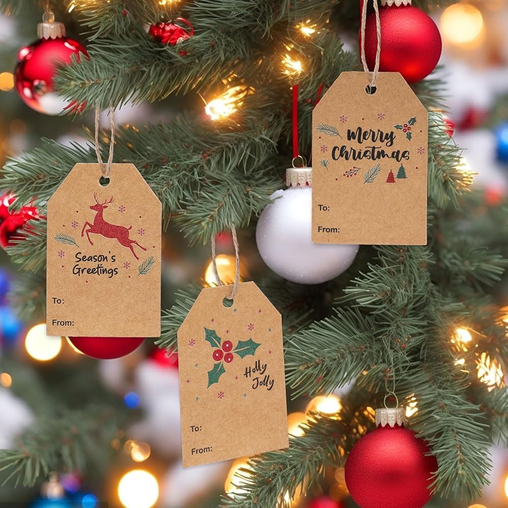 جودة موثوقة: مصنوعة من ورق كرافت عالي الجودة، بطاقات هدايا عيد الميلاد الخاصة بنا سهلة الكتابة عليها وتتميز بسطح أملس لن يتلطخ أو ينزف الحبر.