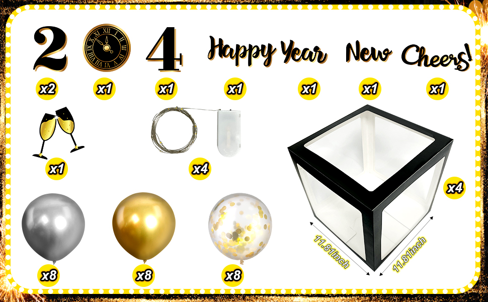 [زينة حفلات رأس السنة الجديدة] يمكن استخدام صناديق بالونات رأس السنة الجديدة هذه على نطاق واسع لحفلات ليلة رأس السنة ودعائم الصور. يمكنك وضعها في المنزل والملعب وأماكن الحفلات وأي مكان آخر. أضف لونًا إلى حفلة رأس السنة الجديدة واستمتع بليلة رائعة.
