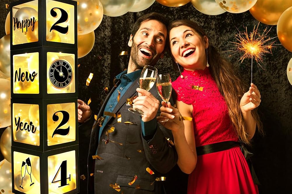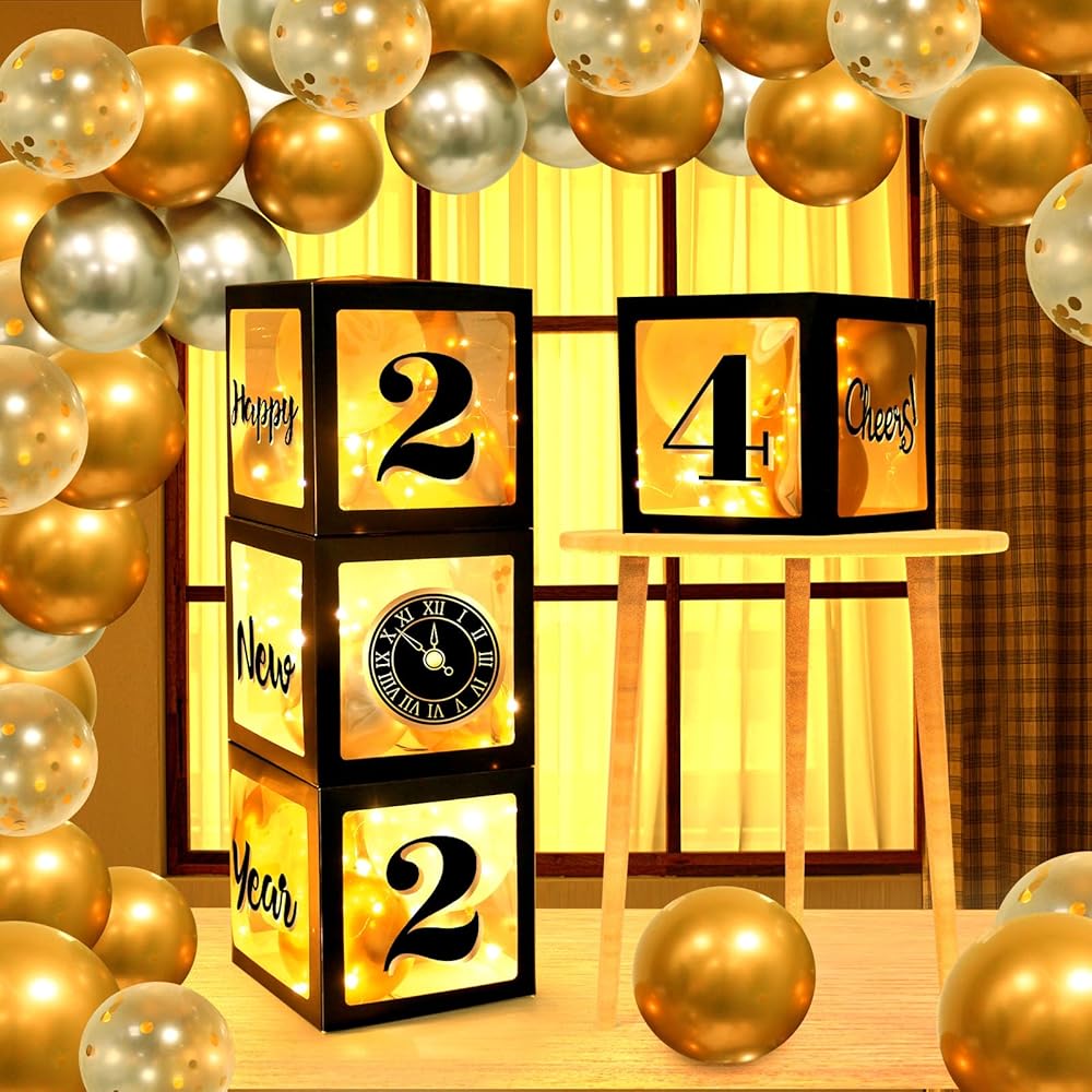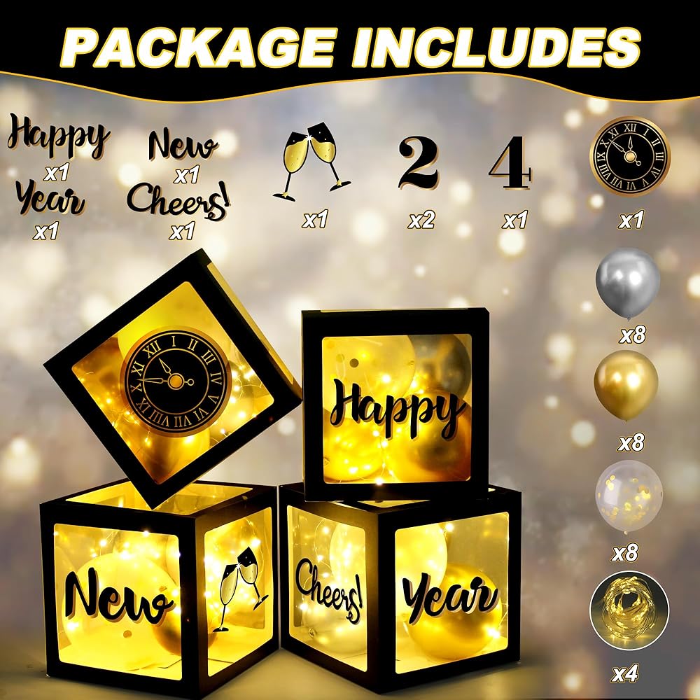 [دعائم صور جميلة] صناديق بالونات رأس السنة الجديدة هذه مثالية لالتقاط الصور، ويمكن أن تخلق جوًا قويًا في ليلة رأس السنة وتزيين ليلة رأس السنة الجديدة. قم بإقرانها مع أضواء صفراء دافئة لتصبح ديكور لامع لحفلات رأس السنة.