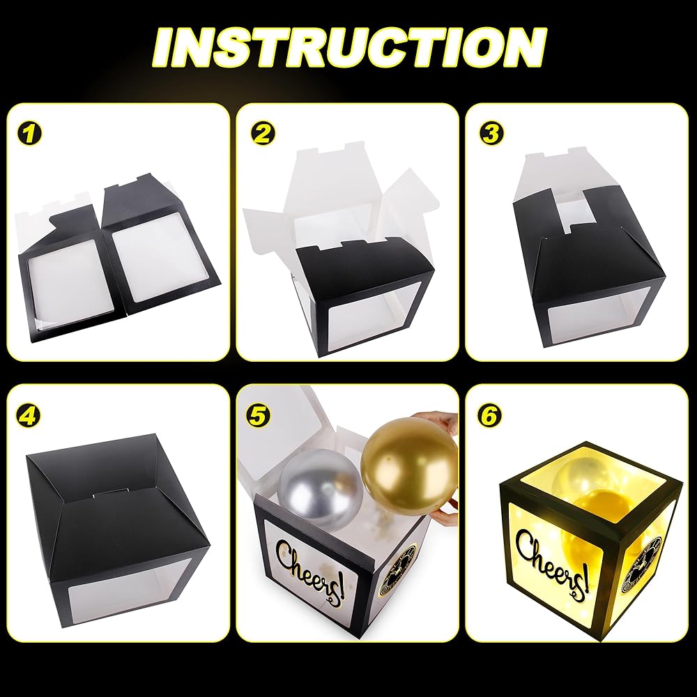 [سهلة التركيب] يمكنك توسيع أو طي صناديق بالونات رأس السنة الجديدة، تشغيل بسيط. يمكنك أيضًا استخدام الغراء للصق الحروف أينما تريد، ويمكن أيضًا دمج البالونات ووضعها حسب الرغبة. مزيج مجاني متروك لك، مثالي لحفلة ليلة رأس السنة.