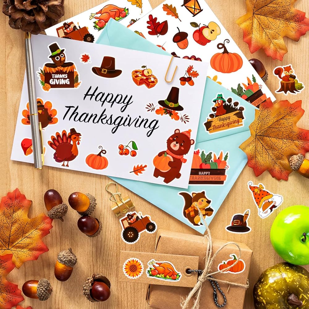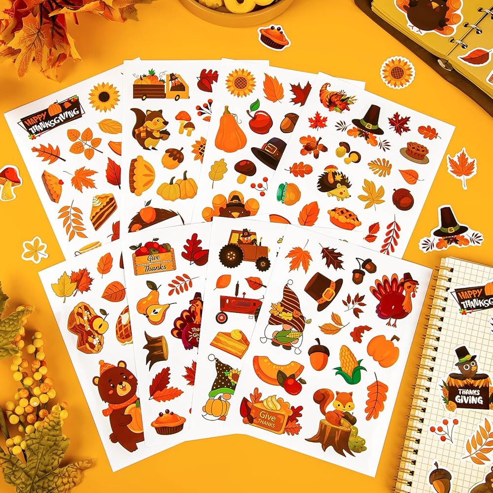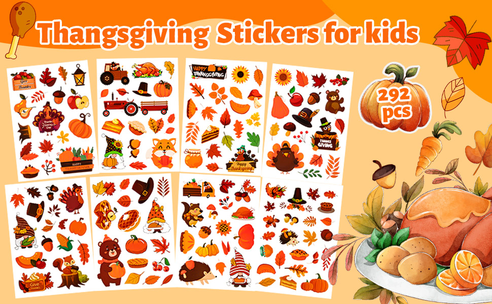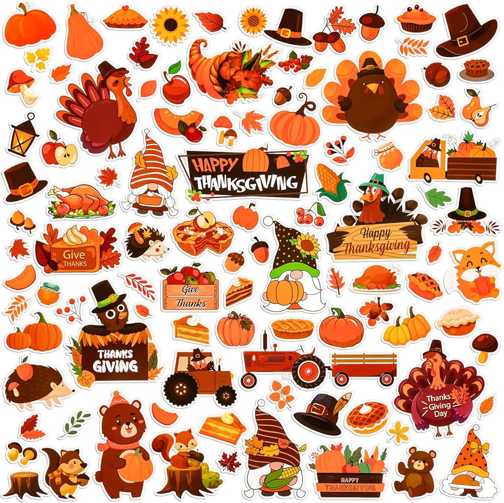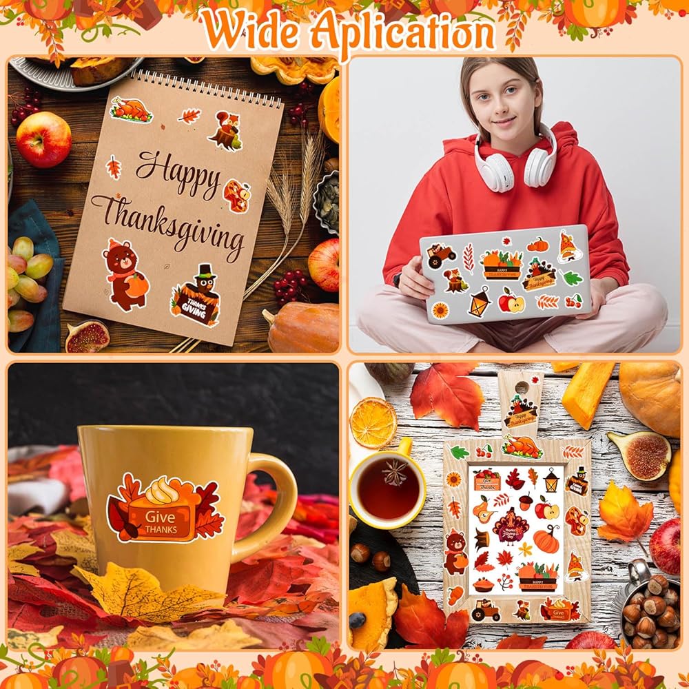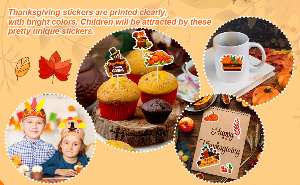 ملصقات عالية الجودة: مصنوعة من مادة PVC عالية الجودة، ويمكن لصقها على أي سطح أملس أو خشن. مقاوم للماء وثابت الألوان، يمكنك تزيينه في حفلة عيد الشكر الخاصة بك كما تريد.