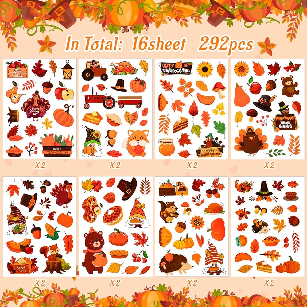 عبوة قيمة: ستحصل على 16 ورقة من ملصقات أوراق القيقب لعيد الشكر في الخريف، 292 قطعة إجمالاً، سيكون لديك الكثير للاستخدام لجميع احتياجات هدايا عيد الشكر والديكور.
