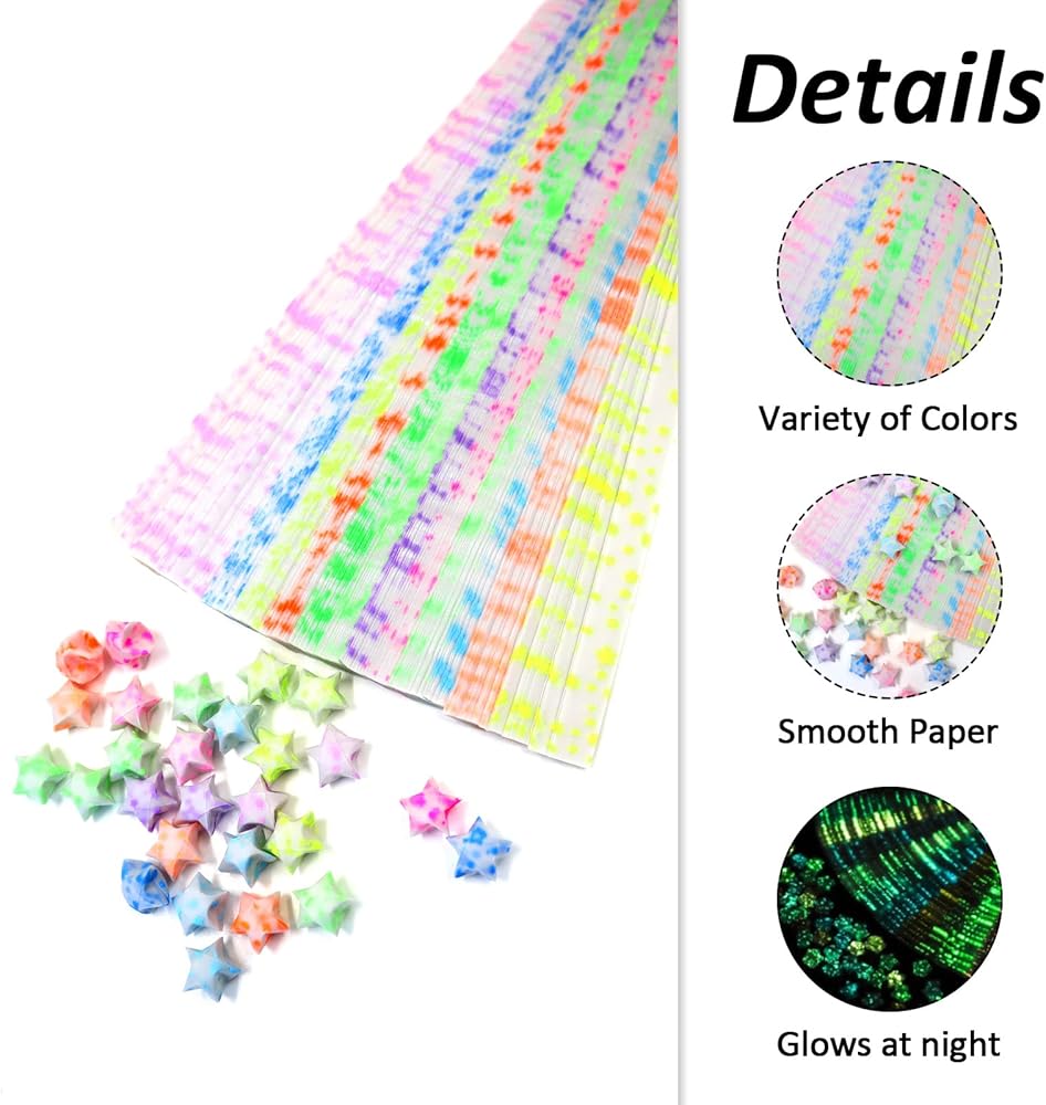 يمكن أن يتوهج ورق لاكي ستار مع أنماط كوكبة في الظلام. يمكن أن يضيف التزيين بالنجوم المتوهجة جوًا رومانسيًا ومدهشًا.