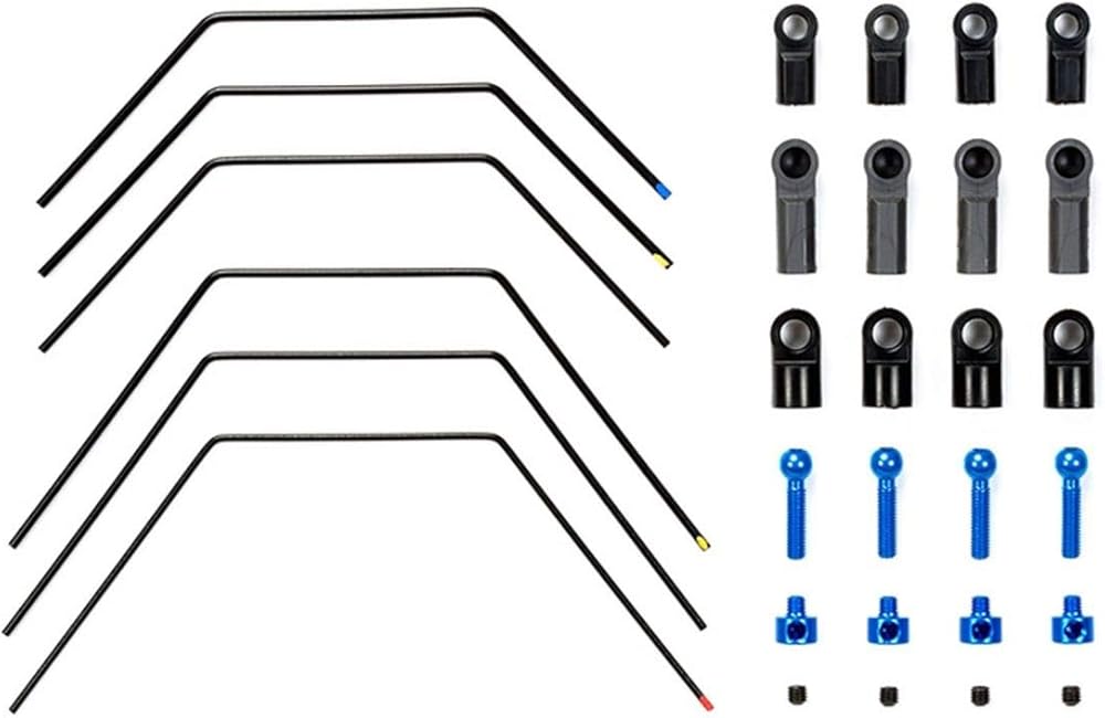 Adjust the setup of your high-end 4WD Touring Car chassis using this stabilizer set. It includes a range of different diameters of wire, each with a color-code marking to aid Swift identification.Front stabilizer bars: 1.5mm dia., 1.4mm dia., 1.3mm dia. x1 eachrear stabilizer bars: 1.3mm dia., 1.2mm dia., 1.1mm dia. x1 eachparts for attachment are included.Compatible with TRF418 cars, or TRF417 and TB04 chassis cars fitted with TRF418 D parts suspension arms..